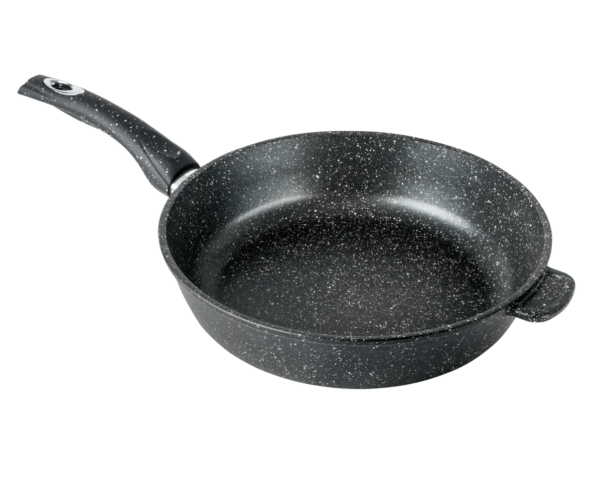 «Гранит». Коллекция посуды с улучшенным четырёхслойным антипригарным покрытием. Дополнительный слой с мраморным эффектом увеличивает износостойкость и создаёт оригинальный оттенок чёрного мрамора.