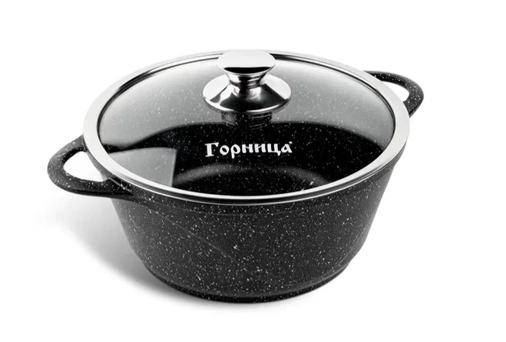Кастрюля «Горница» Ик223аг — это модель объёмом 3 литра из серии «Гранит Induction». Она оснащена литыми ручками и стеклянной крышкой.
