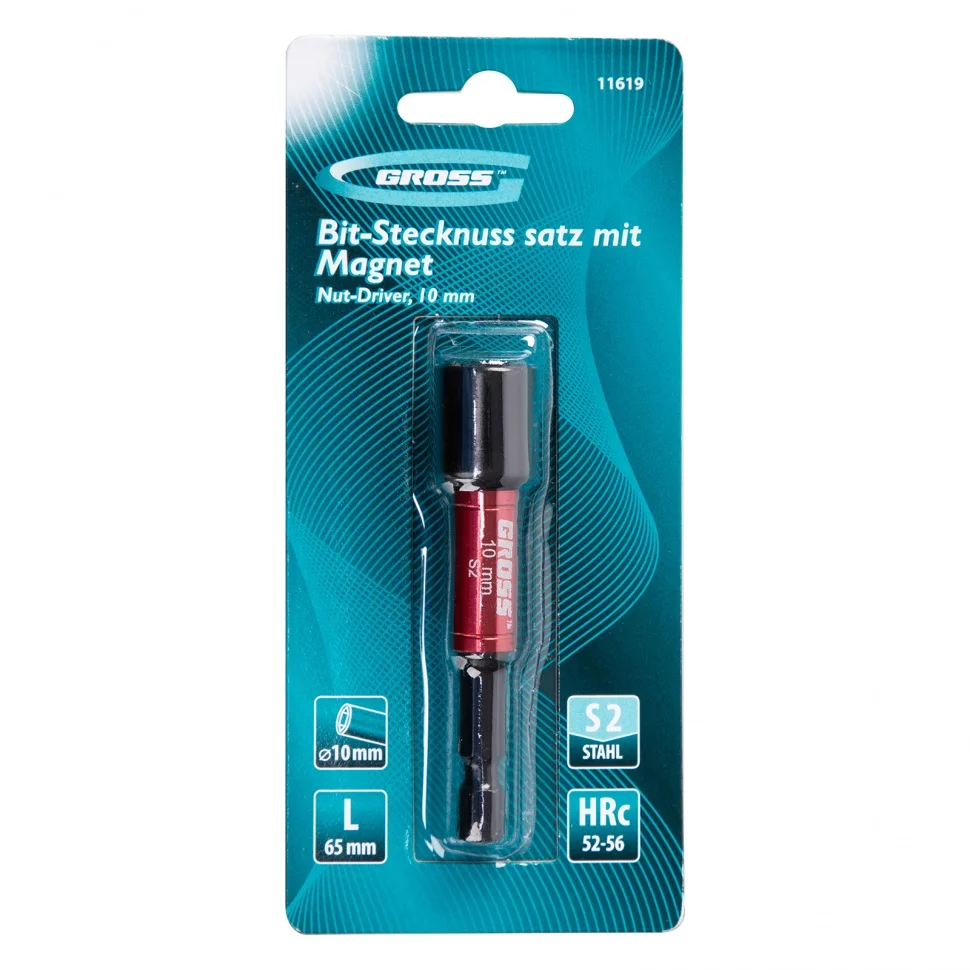 Профессиональная бита с торцевой головкой Gross Nut-Driver арт. 11619 применяется в качестве оснастки на шуруповертах. Она предназначена для монтажных работ с болтами, шурупами и кровельными саморезами, имеющими выступ в форме шестигранника. Насадка выдерживает интенсивные нагрузки и способна ввинтить большое количество метизов без потери работоспособности. Такая бита полностью заменяет торцевую головку.ПреимуществаКорпус твердостью 52-56 HRC изготовлен из японской легированной стали S2, что повышает прочность биты, ее надежность и ресурс.Вращающаяся гильза-воротник позволяет удерживать биту и стабилизировать крепежный элемент.Саморез не выпадает из биты благодаря встроенному магниту, это повышает комфорт работы. Свободной рукой мастер может придерживать кровельный лист.