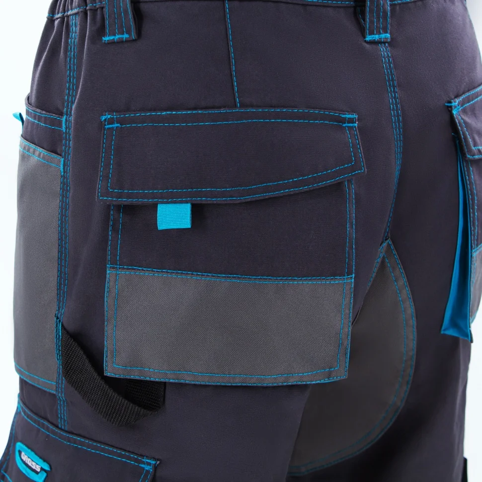 Универсальные брюки Gross 90349 размера XL подойдут для выполнения различных видов работ в теплое время года или в отапливаемом помещении. Они надежно защищают мастера от грязи, мелких повреждений и ссадин. В брюках предусмотрены защитные нашивки и 12 карманов для удобства работы.ПреимуществаНадежность и комфорт — изделие изготовлено из смесовой ткани (35% хлопок / 65% прочный полиэстер), обеспечивающей хороший воздухообмен, а также устойчивость к износу.Прочность и высокий ресурс — в местах наибольшей нагрузки имеются тройные усиленные швы, а также защитные нашивки из более плотной влагостойкой ткани.12 карманов — можно носить с собой необходимые инструменты и другие предметы.Карманы на липучках — мобильный телефон, крепеж и прочие мелочи не выпадут во время работы.Удобная посадка — у брюк имеется эластичный пояс и шлевки для ремня.Комфортная и безопасная работа — предусмотрены карманы для наколенных вкладышей (вкладыши приобретаются отдельно).