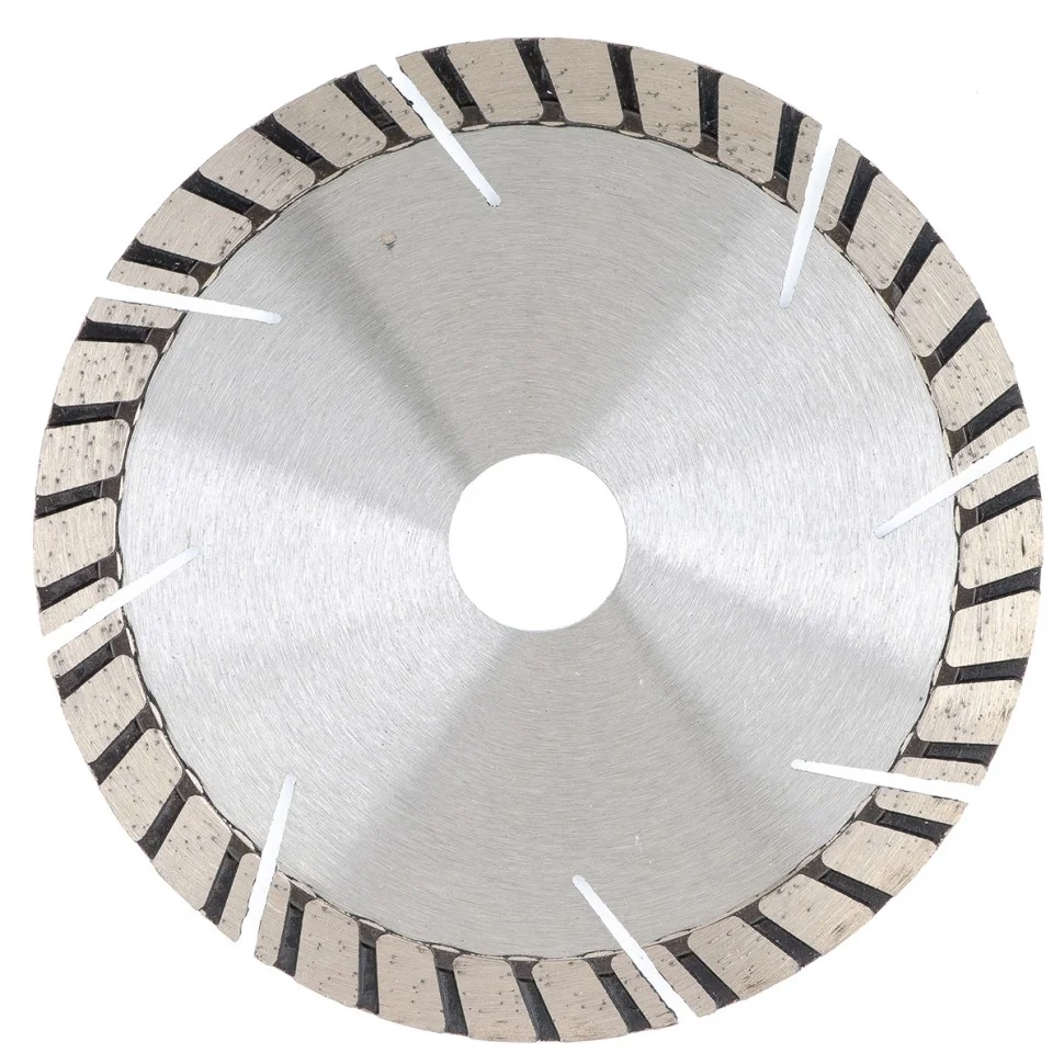 Алмазный турбо-сегментный диск Gross ф230х22,2 мм 73026 для сухого резания устанавливается на УШМ в качестве оснастки для проведения отрезных работ. Диск с турбированной рабочей частью универсален по своему применению и его можно использовать для резки камня, гранита и кирпича, свежего бетона, а также слабоармированного железобетона. Он пригодится для интенсивных работ с профессиональным инструментом.ПреимуществаТурбо-сегментная форма - резание материалов происходит быстро, водяное охлаждение не требуется, в т.ч. армированного бетона.Надежность - диск выполнен методом горячего прессования.Износостойкость и скорость реза до 6650 об/мин - режущая часть выполнена из крупных алмазов размером 40-50 мкм.Рабочая часть 10 мм с высокой концентрацией алмазных зерен - диск идеально подходит для выполнения больших объемов работ.Оптимально подобранная металлическая связка - серебро, кобальт и другие составляющие значительно повышают ресурс диска, позволяют резать материалы разной плотности без риска перегрева.Прочный корпус с защитно-декоративным покрытием - сталь 65 Mn и бесцветный лак обеспечивают высокие эксплуатационные качества инструмента и коррозионную стойкость.