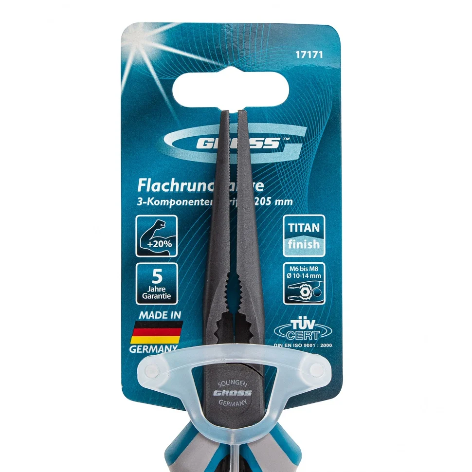 Длинногубцы прямые 205 мм, трехкомпонентные рукоятки Gross 17171