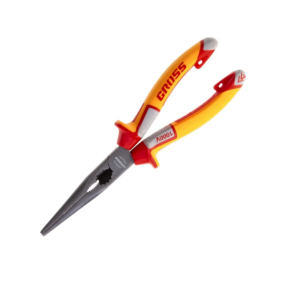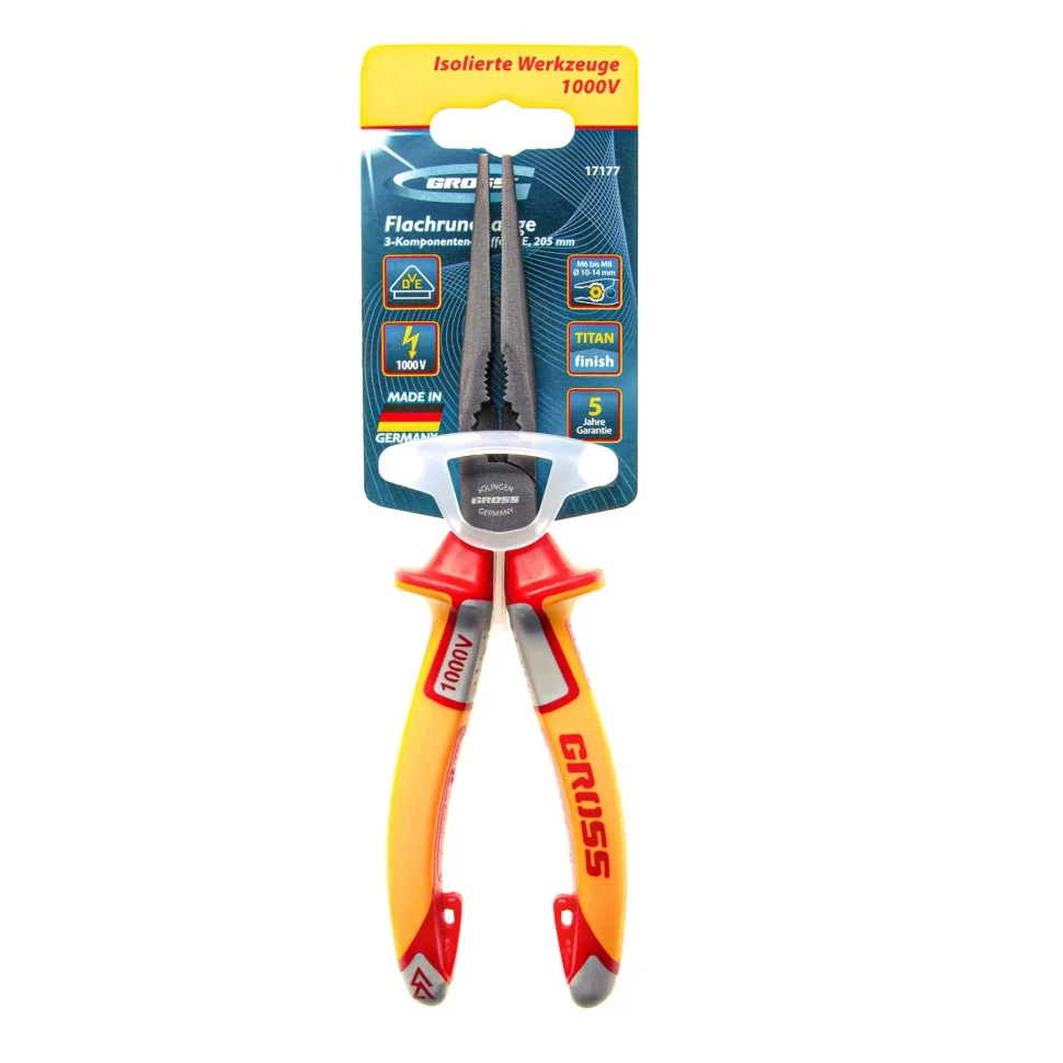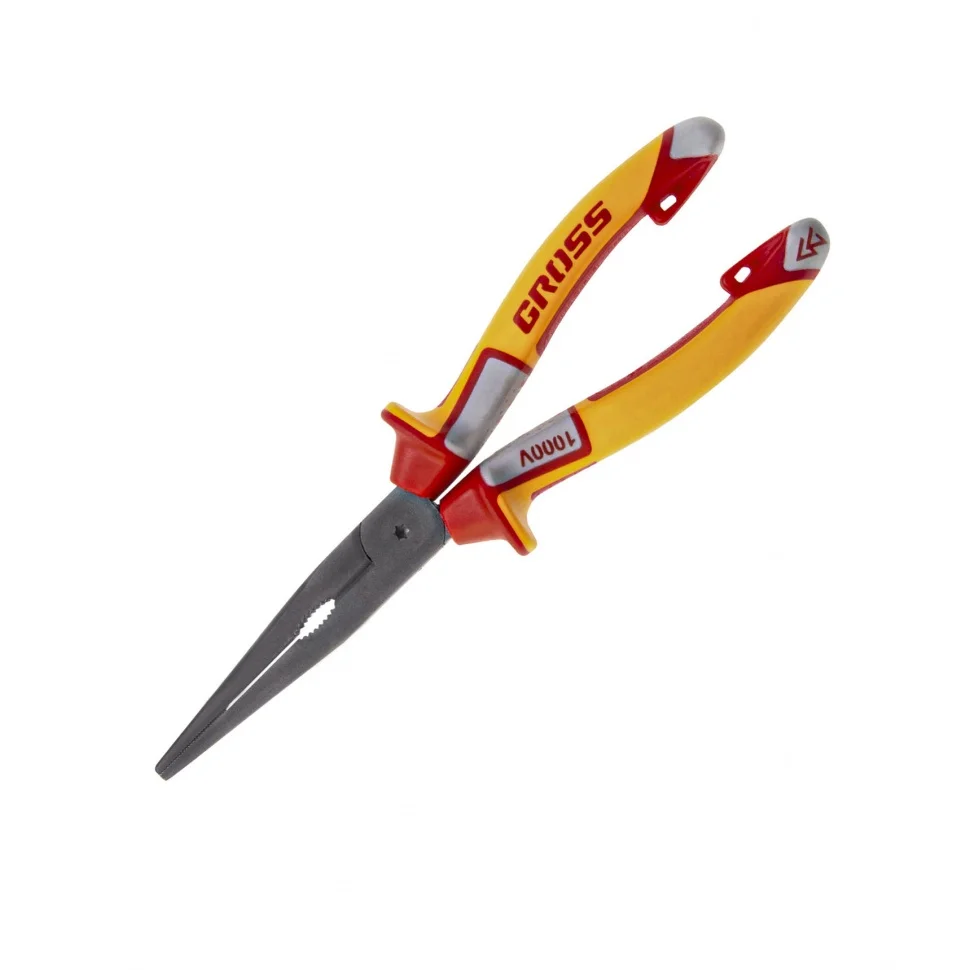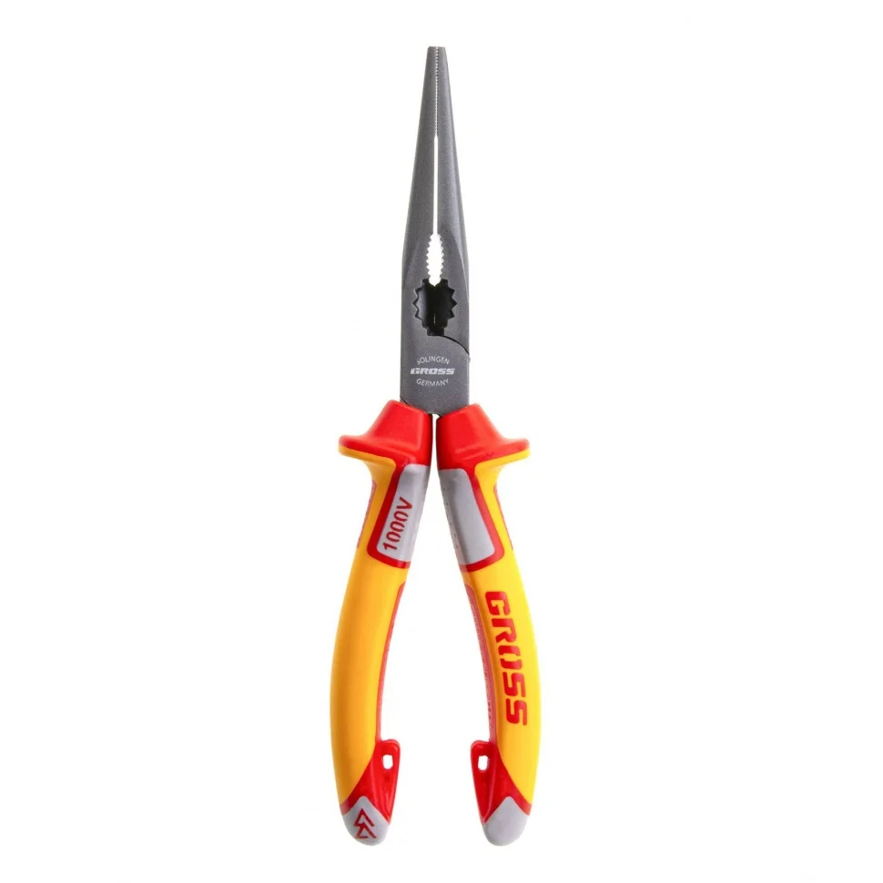 Длинногубцы прямые, диэлектрические рукоятки до 1000 В, трехкомпонентные рукоятки, 205 мм Gross 17177