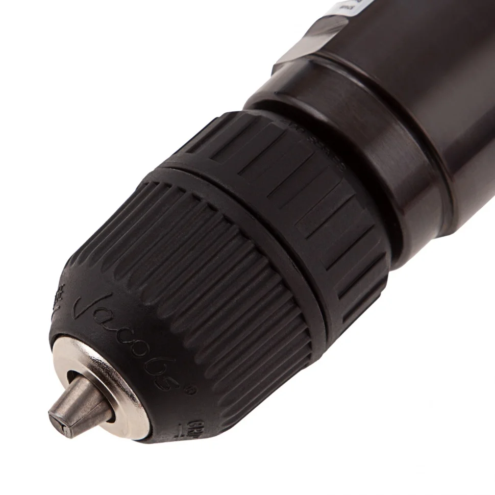 Пневматическая дрель Gross G302 57449 с патроном 10 мм (3/8″) и частотой вращения 1800 об/мин, предназначена для оснастки диаметром до 10 мм и позволяет сверлить отверстия в деревянных, металлических и пластиковых конструкциях. Это надежный инструмент, который не перегревается даже при интенсивных нагрузках, поэтому его можно применять в промышленных целях на сборочных производствах, в автосервисах и на строительных площадках.ПреимуществаПрочность — корпус из композитного материала устойчив к механическим повреждениям и выдерживает минусовую температуру (до -35 градусов С).Легкая установка оснастки — быстрозажимной патрон экономит время на замену сверл.Функция реверса — можно менять направление вращения патрона для выкручивания застрявшей оснастки.Быстросъемное соединение — инструмент легко подключается к компрессору, что экономит время на подготовку к работе.Комфортная работа — обрезиненная рукоятка удобно лежит в руке и не выскальзывает из ладони.Вес 1,3 кг — длительная работа с дрелью не вызывает усталость, что позволяет выполнять большие объемы задач.Гарантия 3 года — высокое качество инструмента подтверждено производителем.