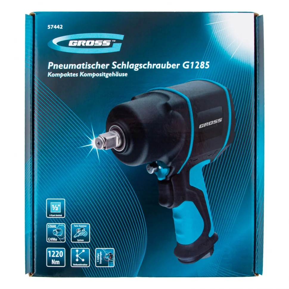 Гайковерт пневматический ударный G1285, 1/2, Twin Hammer, 1220Нм, 6500 об/мин, композитный Gross 57442