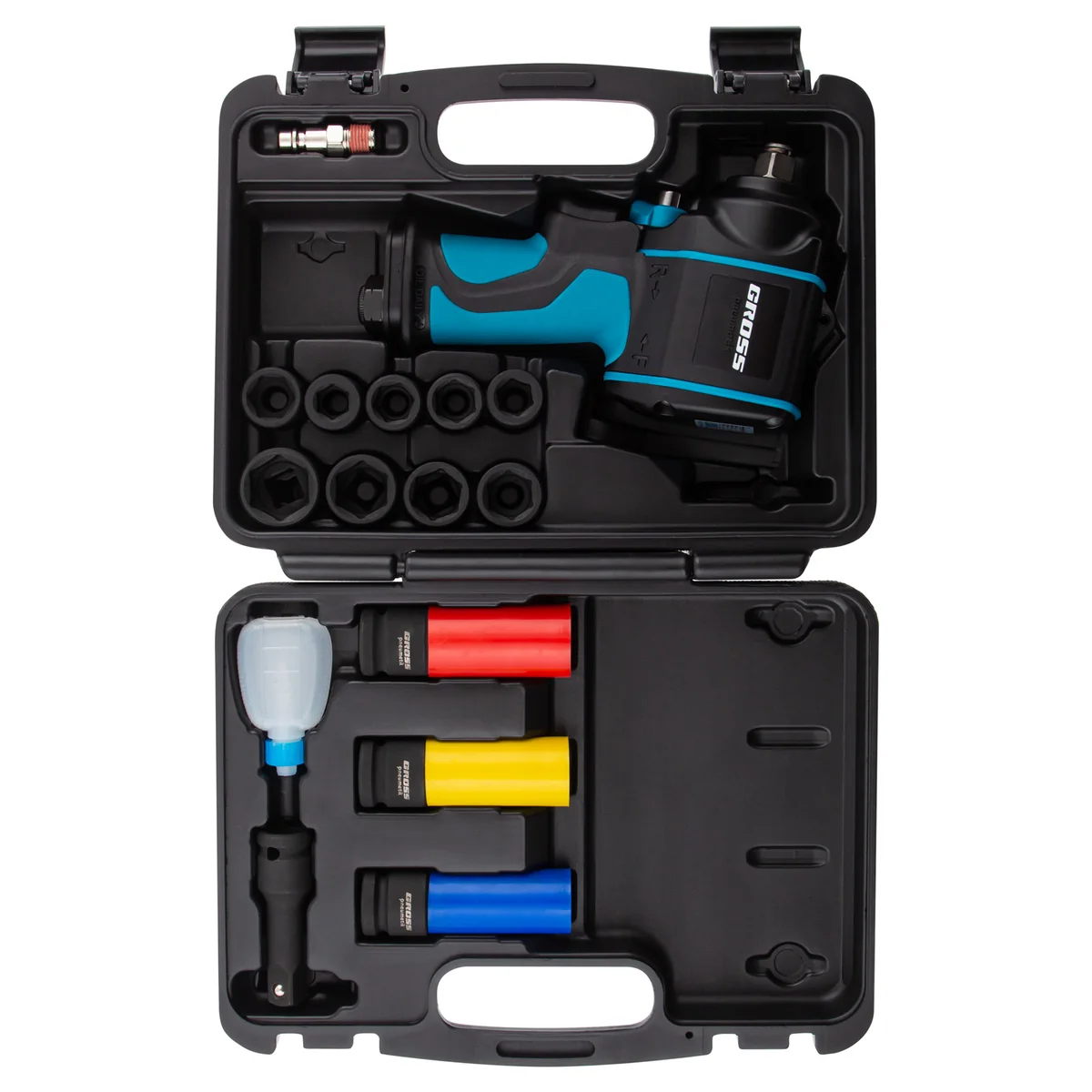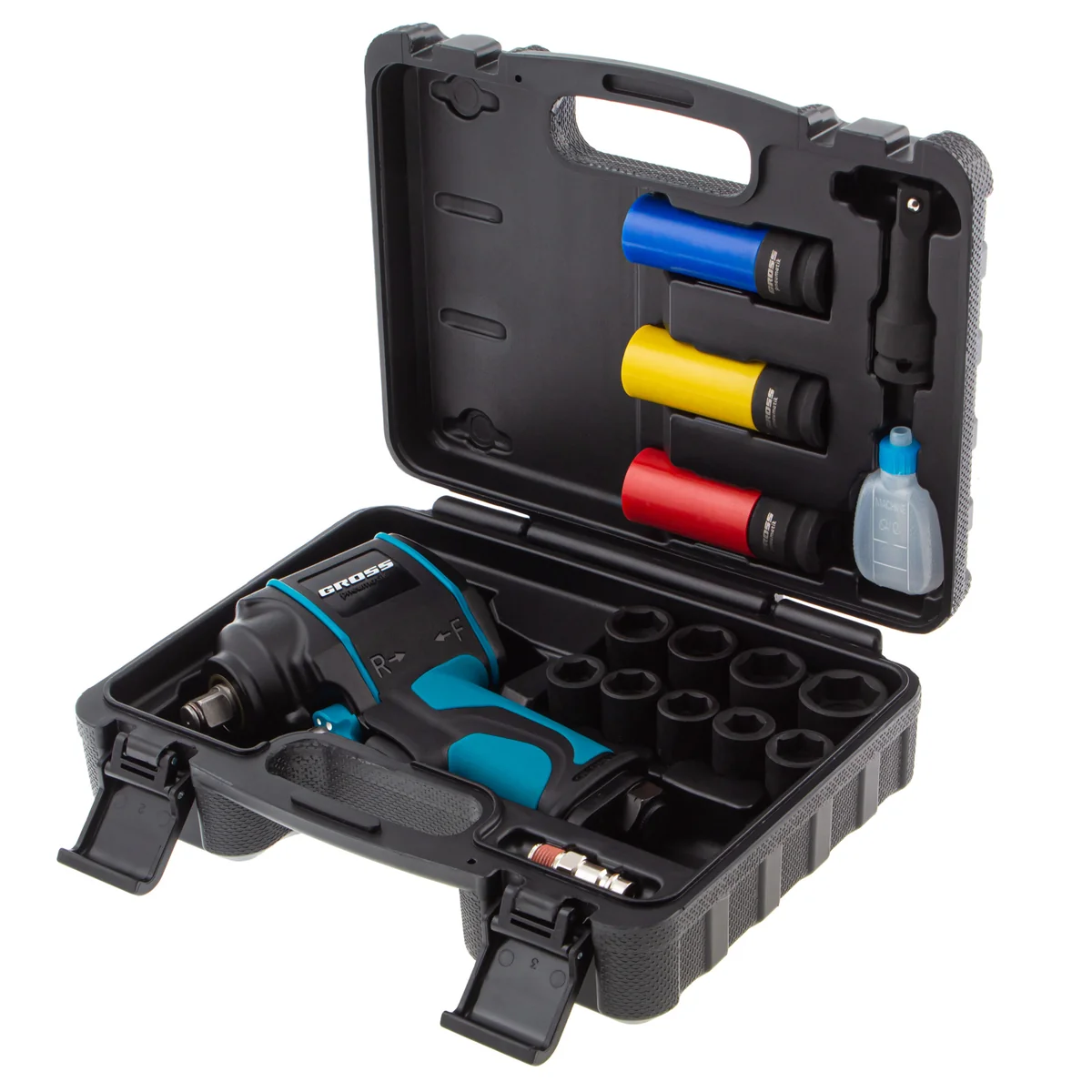 Гайковерт пневматический ударный G985K2, 1/2, 610Нм 9000 об/мин, с набором 17 предметов Gross 57445