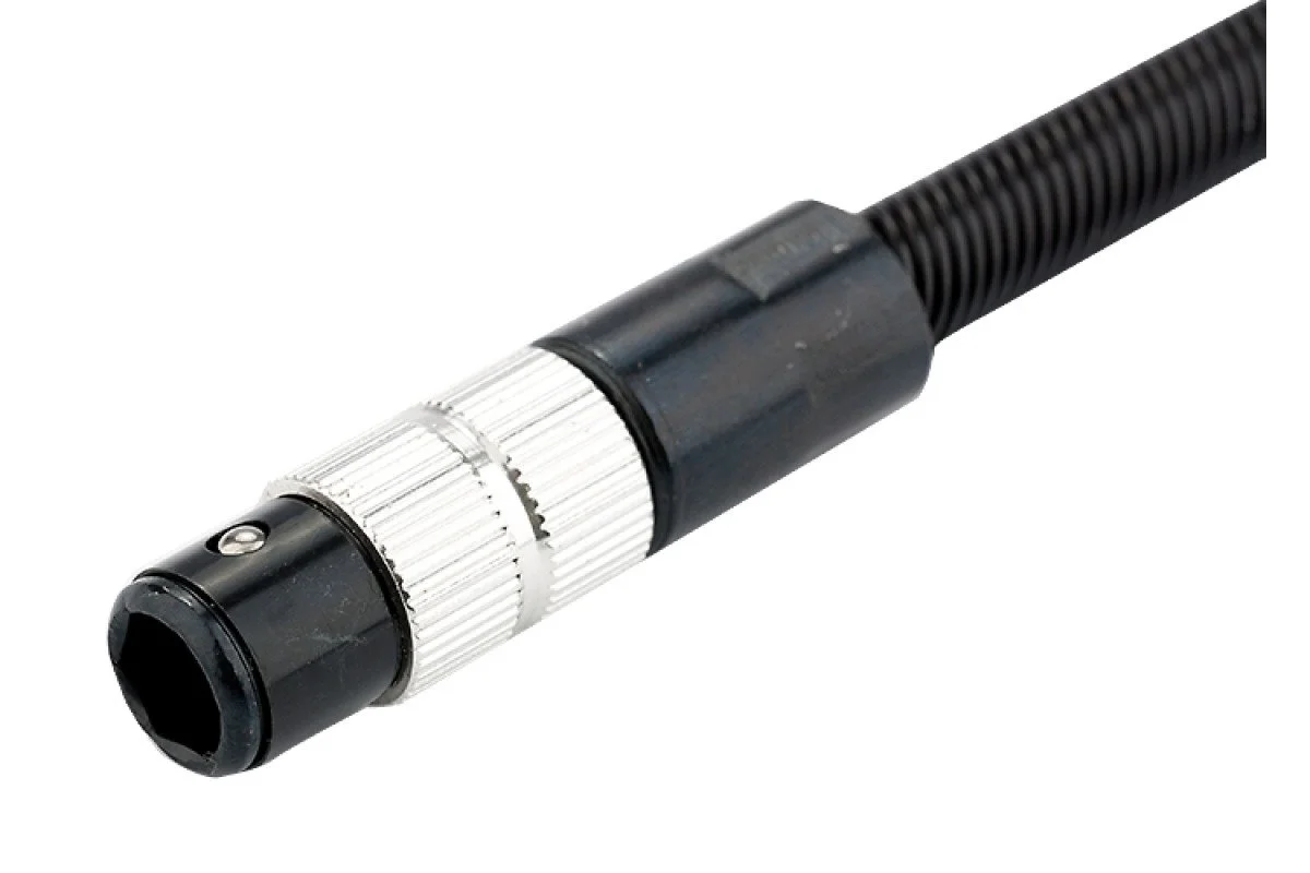 Адаптер для бит Gross 11367 обладает хвостовиком типа 1/4" и может устанавливаться в быстрозажимные патроны аккумуляторных дрелей и шуруповертов. Это гибкий удлинитель для оснастки с шестигранным хвостовиком, который применятся для работы с крепежом в труднодоступных местах. С его помощью насадку-биту можно надежно зафиксировать с помощью штифта и направить к крепежу, к которому невозможно подобраться без удлинителя. Общая длина переходника составляет 145 мм.