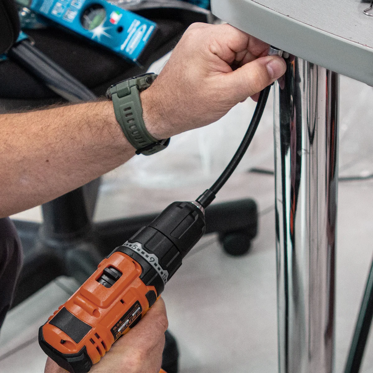 Гибкий переходник для бит Gross 11369 длиной 190 мм, 1/4 дюйма, облегчает монтаж и демонтаж резьбовых соединений в труднодоступных местах. Он позволяет работать со стандартными битами, легко меняя их. Используется с шуруповертом.ПреимуществаДлины 19 см достаточно для работы на участках, где не хватает оснастки, установленной непосредственно на шуруповерт.Гибкий стержень позволяет получить доступ к участкам, расположенным под углом к оси вращения патрона шуруповерта.Вращающееся кольцо позволяет удерживать гибкий переходник для стабилизации крепежа и более эффективной работы.Магнитный держатель предотвращает выпадение биты, позволяя эффективно работать в ограниченном пространстве.Переходник изготовлен из хромированной стали, что обеспечивает его прочность, стойкость к износу и коррозии.