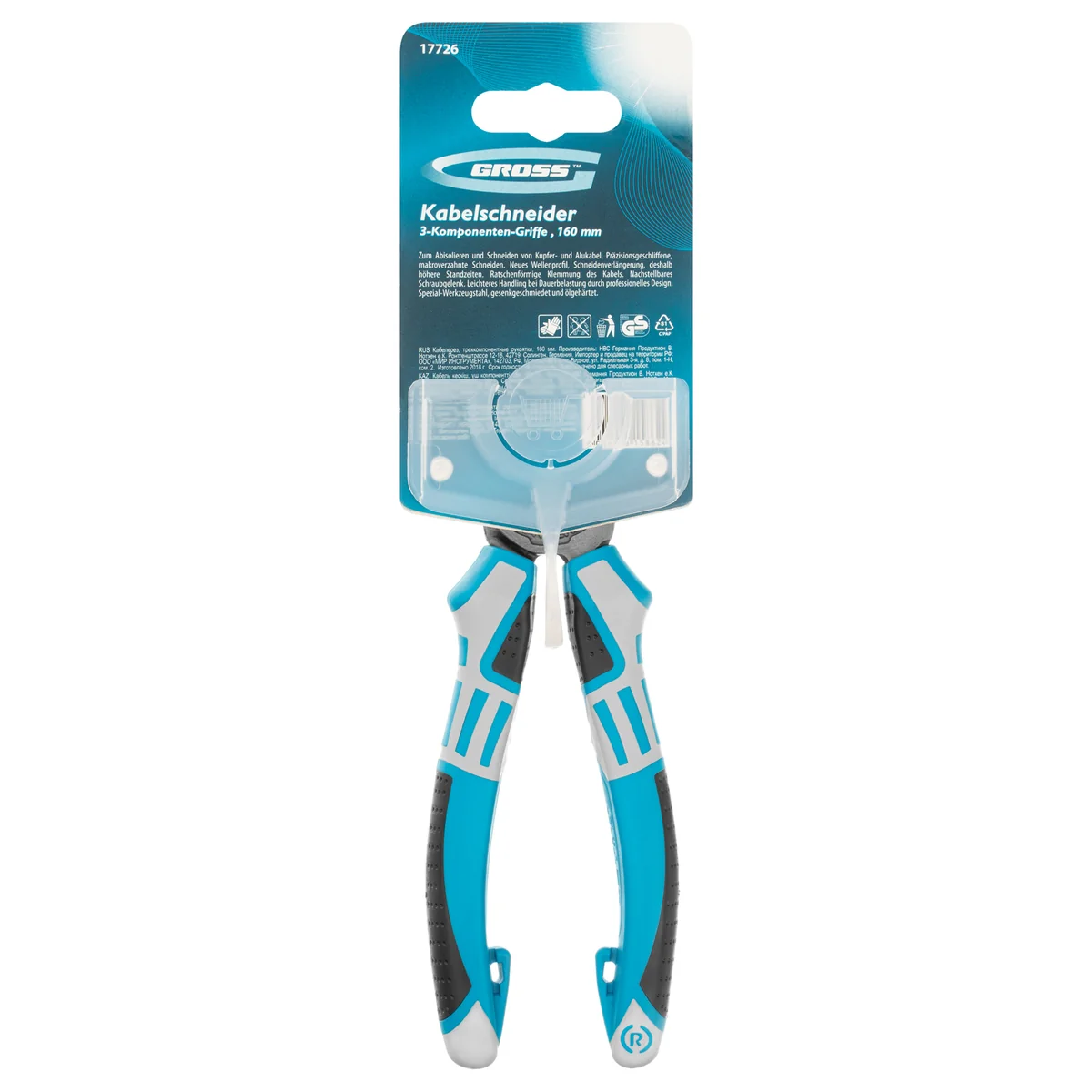 Кабелерез Gross 17726 длиной 160 мм, с трехкомпонентными рукоятками, — незаменимый помощник при выполнении электромонтажных работ. Поможет перерезать кабель из алюминия и меди диаметром до 16 мм или сечением 50 кв. мм. Важно — инструмент может использоваться только для многопроволочных жил и не подходит для работы с алюминиевыми сплавами, стальной проволокой и холоднотянутыми медными проводами.Преимущества Кабелерез изготовлен из прочной стали С60 и отличается высокой износостойкостью. Специальное покрытие Titan finish защищает инструмент от образования коррозии. Режущие кромки с закругленным профилем предотвращают выскальзывание кабеля и обеспечивают высокую эффективность работы. Эргономичные трехкомпонентные рукоятки надежно ложатся в руку, поэтому инструментом удобно работать. Гарантия 5 лет на заводской брак подтверждает высокое качество инструмента.