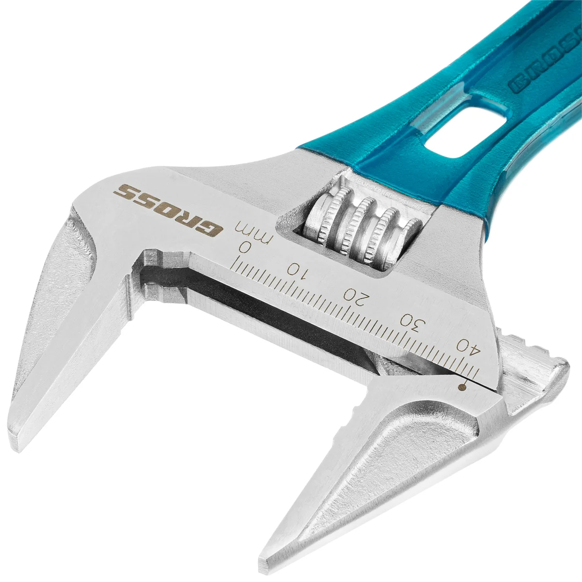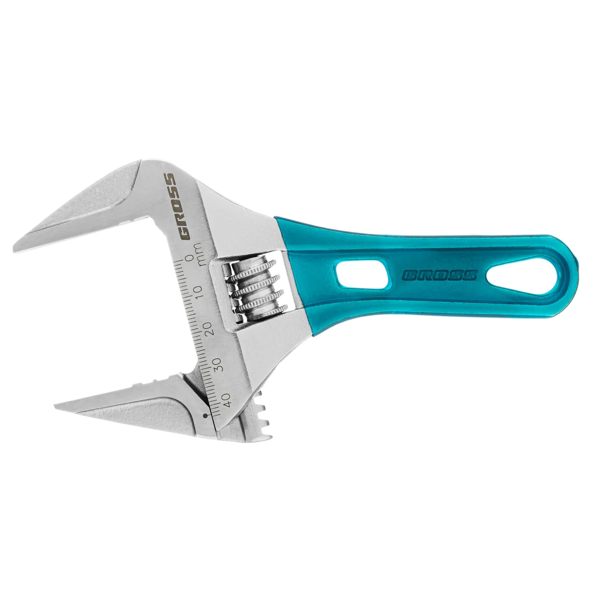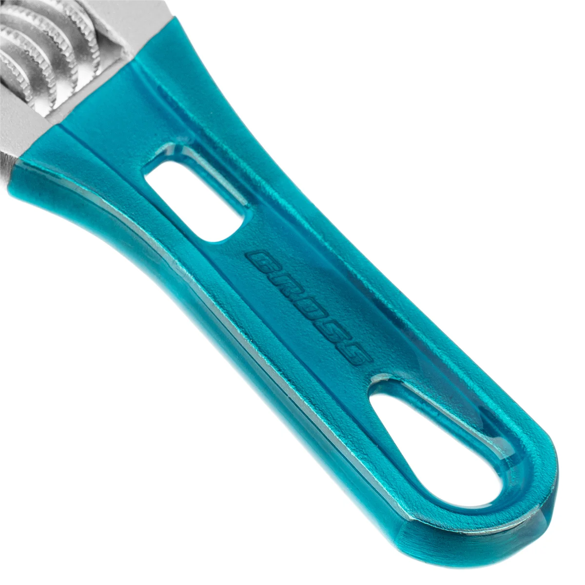 Разводной ключ Gross 15566 длиной 160 мм, из стали CrV, с укороченной ручкой и широким диапазоном раскрытия зева до 43 мм, подходит для работы как с мелкими, так и с крупными крепежными элементами. Губки раскрываются на 50% больше, чем у стандартных ключей. Ребристая рабочая поверхность губок обеспечивает надежный захват деталей и повышает точность работы.ПреимуществаНадежность и долговечность — ключ выполнен из высококачественной хромованадиевой стали.Укороченная рукоятка и тонкие губки — ключом удобно работать в труднодоступных местах.Защита от ржавчины — хромированный корпус устойчив к коррозии, поэтому инструмент прослужит долго.Облегченный корпус — ключом можно долго работать без усталости.