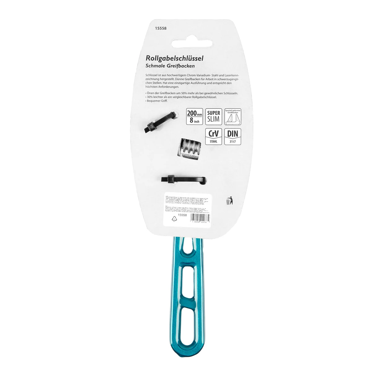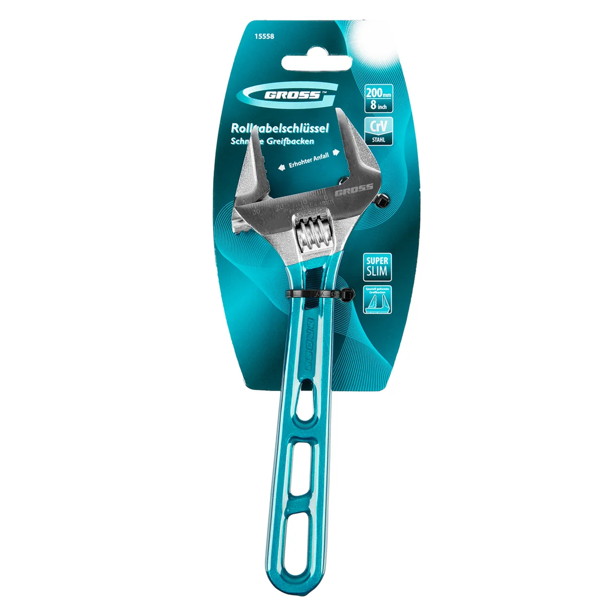 Облегченный разводной ключ Gross 15558 длиной 200 мм, из стали CrV, подходит для работы как с мелкими, так и с крупными крепежными элементами. Максимальный диапазон раскрытия зева составляет 32 мм. Конструкция инструмента усилена благодаря дополнительным ребрам жесткости на рукоятке. Ребристая рабочая поверхность губок обеспечивает надежный захват деталей и повышает точность работы.