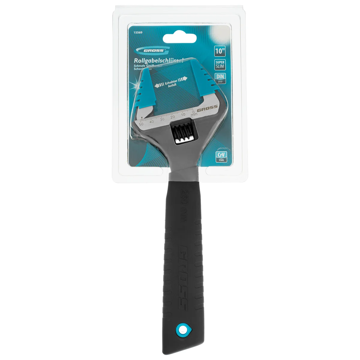 Разводной ключ Gross 15569 длиной 250 мм, с тонкими губками и защитными насадками, позволяет регулировать ширину раскрытия зева на 30% больше, чем у стандартных моделей. Инструмент оптимально подходит для монтажа и демонтажа крепежных элементов диаметром до 50 мм. Имеет широкую область применения: сантехнические работы, мелкий бытовой ремонт, полупрофессиональное применение и т.д. Тонкие губки легко проникают в труднодоступные места.ПреимуществаКлюч изготовлен из хромованадиевой стали, что придает ему повышенную износостойкость, прочность и надежность.Фосфатное покрытие не допускает появления коррозии на поверхности инструмента.Защитные насадки в комплекте снижают риск деформации хромированных деталей.Метрическая линейка на ключе помогает выставить нужный размах зева.Рукоятка эргономичной формы обеспечивает надежный хват и комфортную работу, позволяет прикладывать больше усилий для откручивания и закручивания деталей.Благодаря облегченному корпусу с ключом удобно работать даже длительное время.На рукоятке предусмотрено отверстие для подвесного хранения ключа.