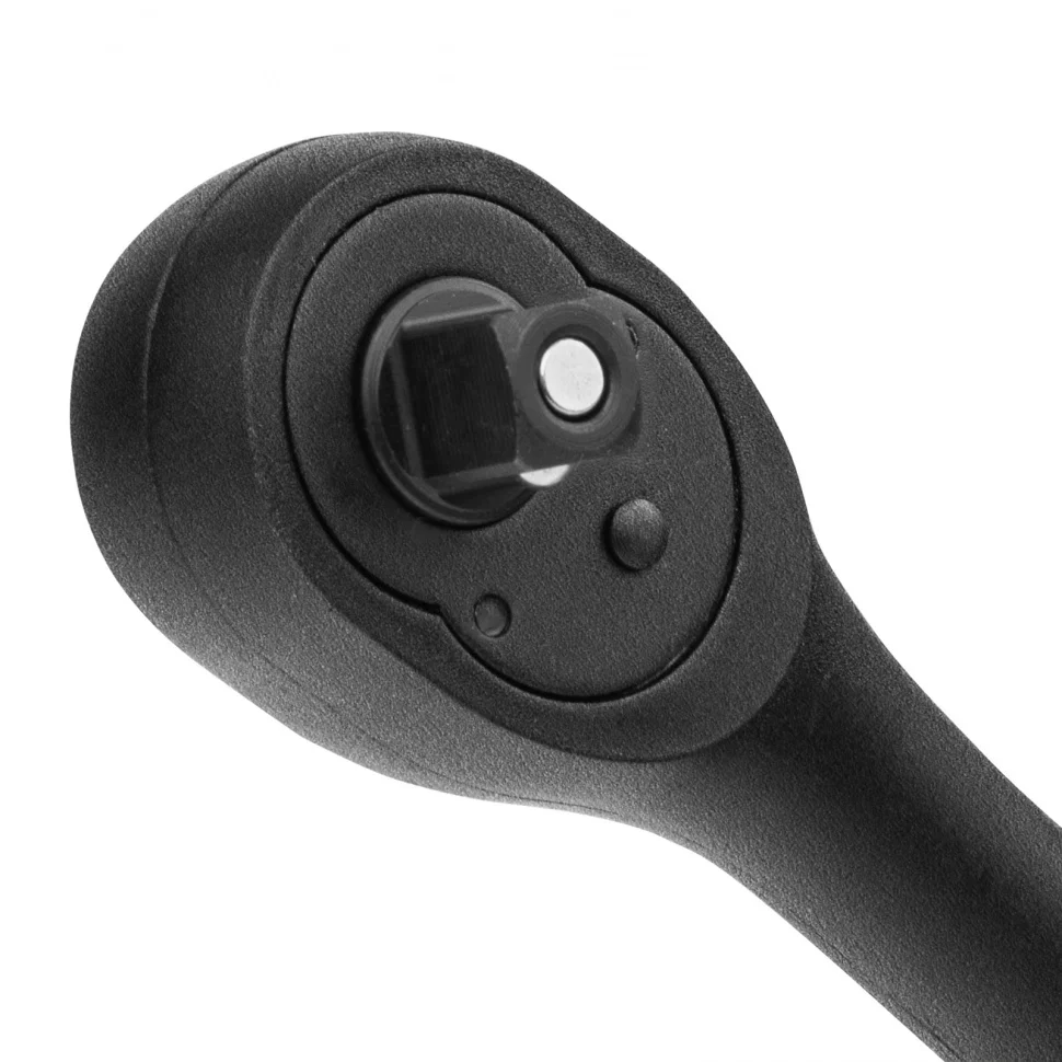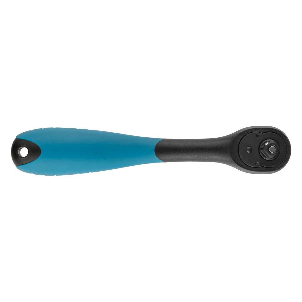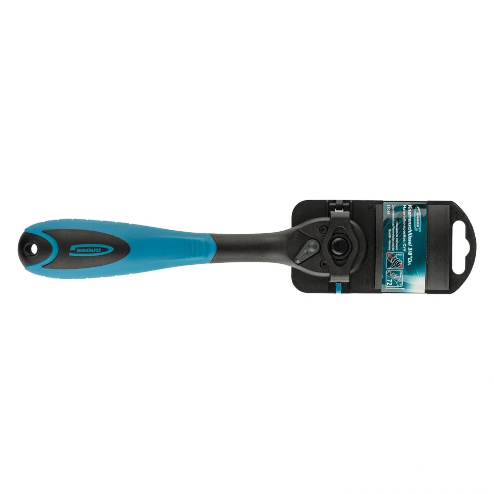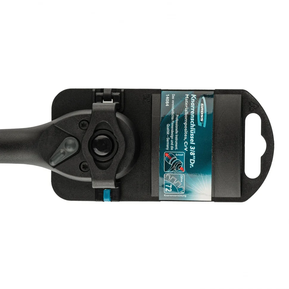 Ключ-трещотка Gross Comfort 14084 из стали CrV, с 2-компонентной рукояткой, присоединительным квадратом 3/8 дюйма и быстрым сбросом, оснащен храповым механизмом с 72 зубцами для быстрого и плавного закручивания и откручивания резьбовых крепежей. Удобен для работы в ограниченном пространстве, т.к. шаг трещотки составляет всего 5 градусов. Трещоточный ключ используется в сервисных центрах, авторемонтных мастерских, будет полезен при монтаже оборудования, также пригодится дома, в гараже или на даче.Преимущества Долговечность — инструмент изготовлен из стали хромованадиевой группы, что гарантирует его износостойкость. Устойчивость к агрессивным воздействиям — благодаря защитному полипропиленовому покрытию ключ подходит для работы в экстремальных условиях. Быстрый переход от монтажа к демонтажу — флажковый переключатель позволяет мгновенно изменить направление вращения храповика. Надежная фиксация оснастки — благодаря шариковому фиксатору насадка крепко держится на рабочем квадрате. Быстрая замена насадок — кнопкой сброса можно мгновенно освободить присоединительный квадрат от головки. Комфорт во время использования — эргономичная рукоятка дает возможность долго работать без усталости.