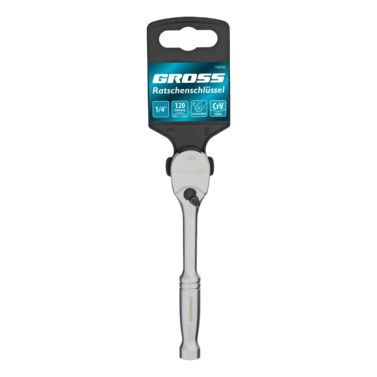 Цельнометаллический ключ-трещотка Gross 14050 с присоединительным квадратом 1/4" оснащен храповым механизмом со 120 зубьями. Предназначен для установки торцевых головок, а также адаптеров и удлинителей с посадочным отверстием соответствующего размера. Шаг храпового механизма составляет 3°, поэтому инструмент оптимален для использования в труднодоступных местах. Будет полезен в сервисном центре, на СТО, а также пригодится дома или в поездке.