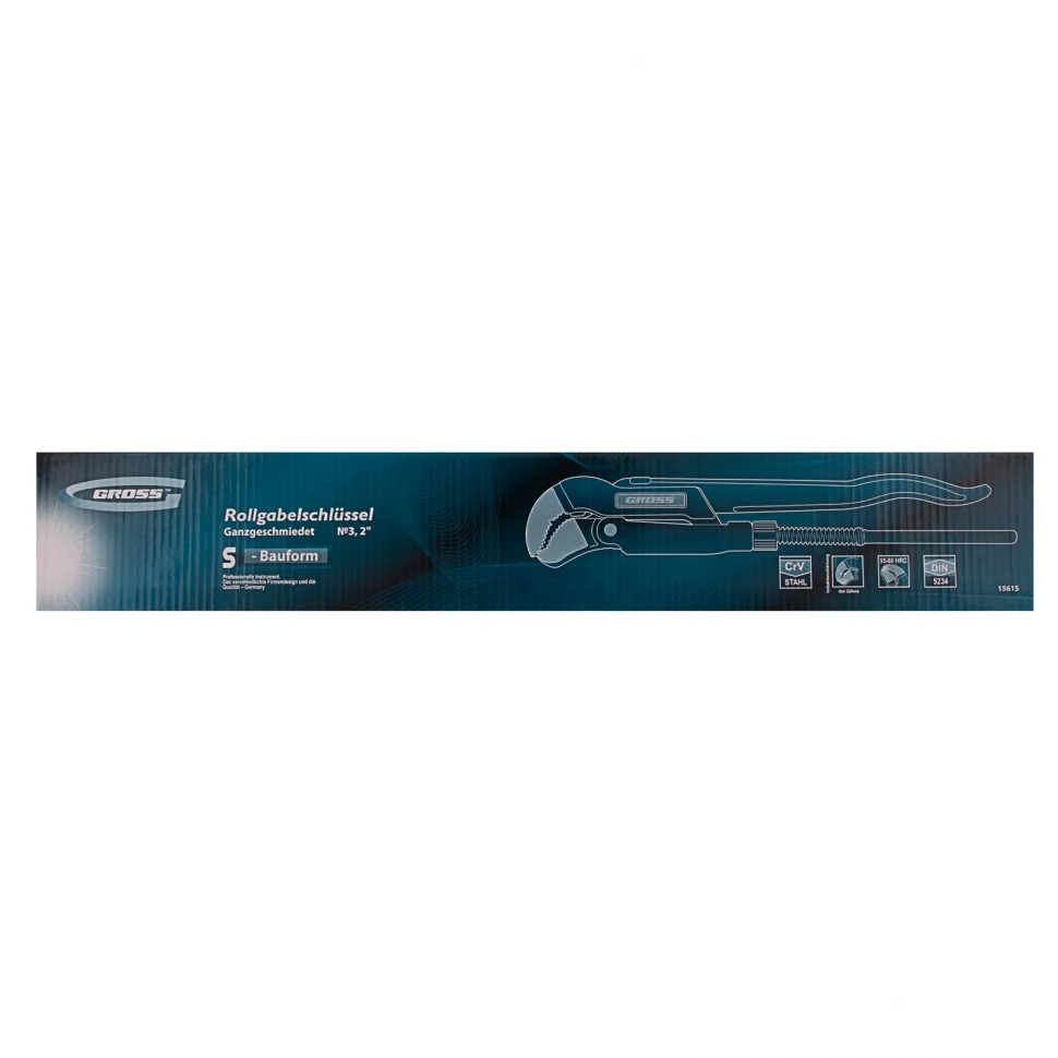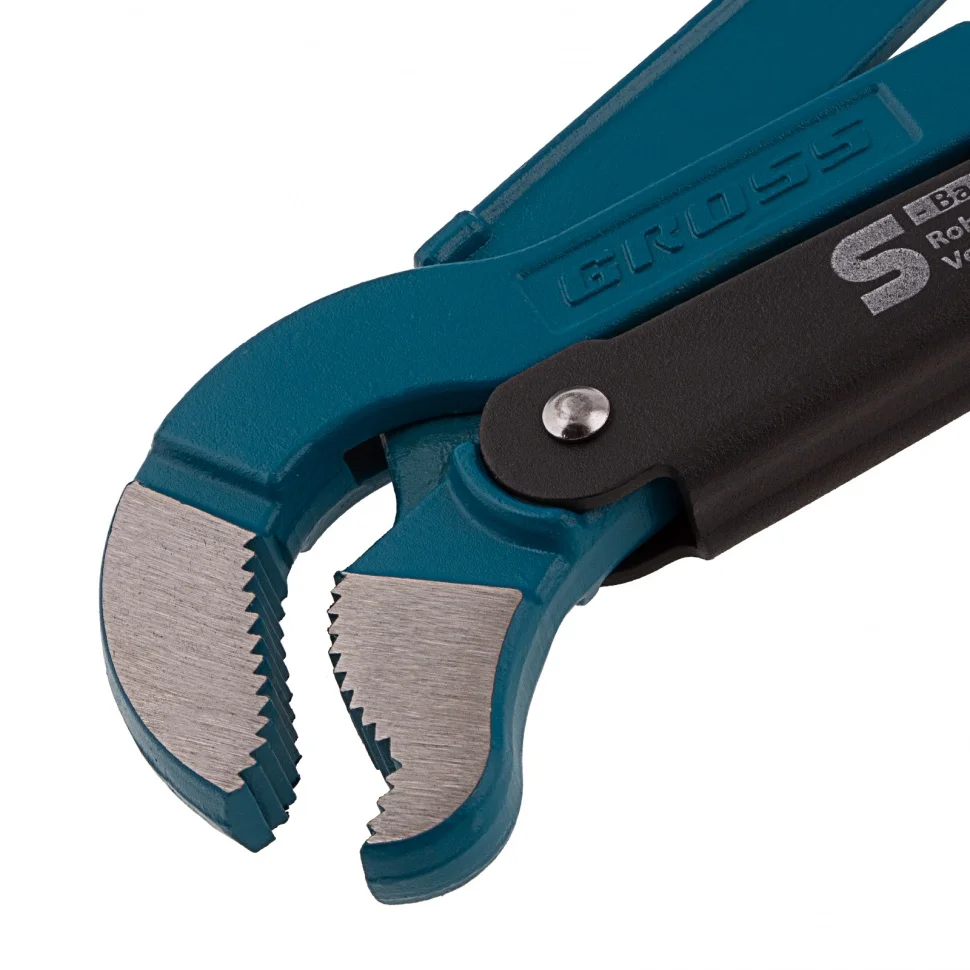 Цельнокованый трубный рычажный ключ Gross №3 15615 из стали CrV, тип «S», используется для захвата и вращения труб и соединительных деталей диаметром 2 дюйма. Ключ S-образной формы надежно удерживает предметы сложной формы, а также позволяет работать в труднодоступных местах. Благодаря рычажному механизму от мастера требуется меньше усилий. Инструмент легко справляется с большим объемом работ, поэтому пригодится сотрудникам автосервиса, работникам коммунальных и других служб, а также будет полезен в быту.ПреимуществаКлюч изготовлен из прочной хромованадиевой стали, поэтому выдерживает высокие нагрузки.Губки закалены высокочастотными токами до твердости 55-60 HRC, что повышает рабочий ресурс инструмента.За счет зубьев, наклоненных в противоположную от направления вращения сторону, ключ крепко фиксируется на детали.Стопорное кольцо предотвращает случайное откручивание регулировочной гайки.Порошковое покрытие надежно защищает инструмент от образования коррозии, продлевая срок его службы.