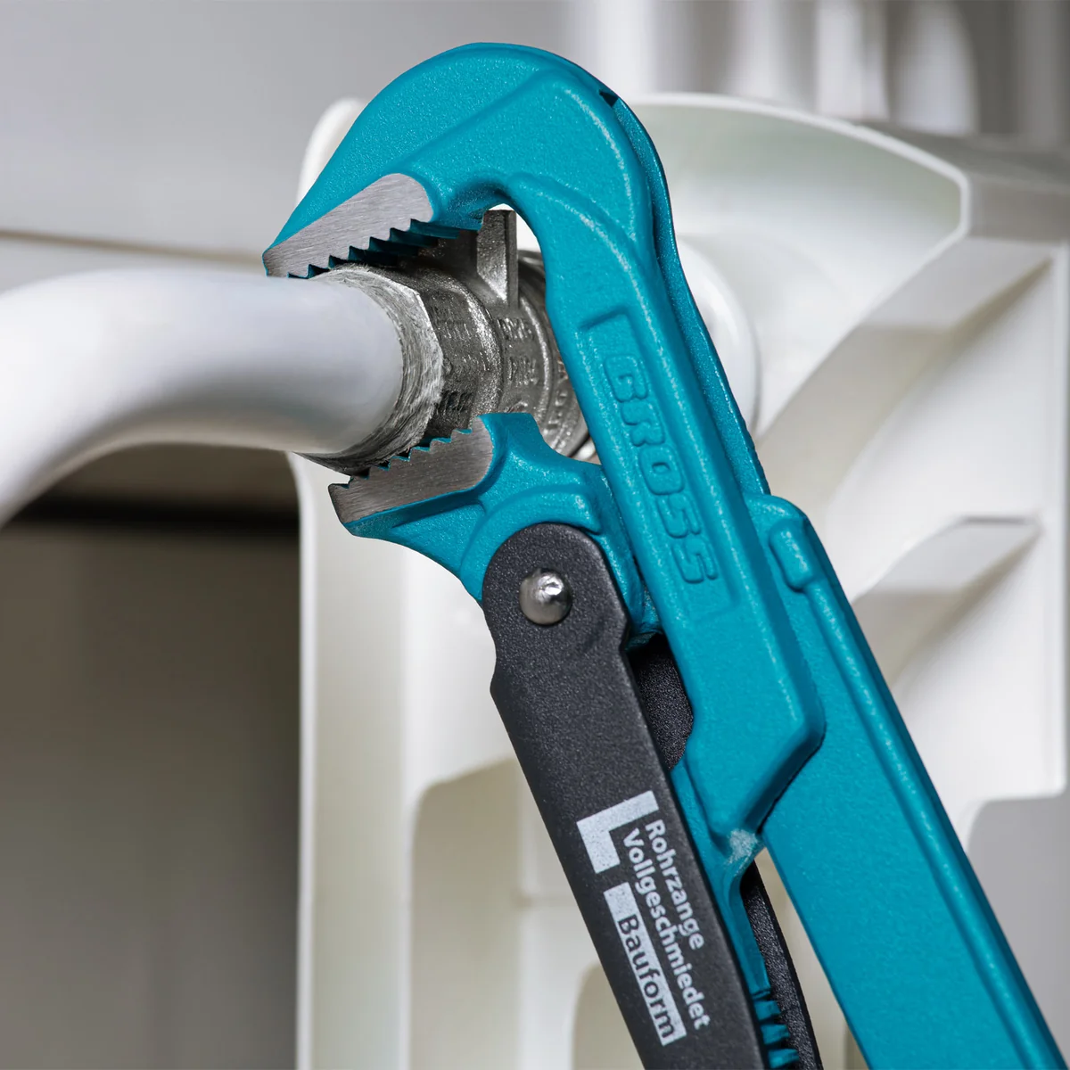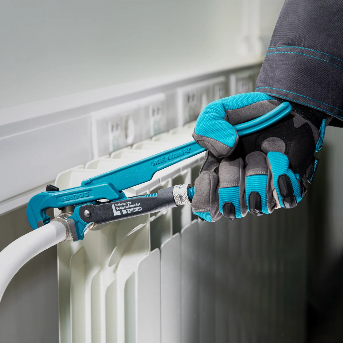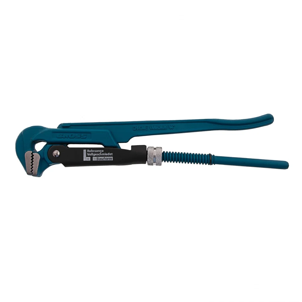 Цельнокованый трубный рычажный ключ Gross №0 15600 из стали CrV, тип «L», используется для захвата и вращения труб, а также других деталей диаметром 3/4 дюйма без специальных граней. L-образная форма оптимальна для удержания плоских деталей. Рычажный механизм обеспечивает высокое прижимное усилие, повышая эффективность работы. Усиленная конструкция ключа выдерживает интенсивные нагрузки и позволяет применять его как в быту, так и в профессиональной сфере — в автомастерских, ЖКХ и т.д.ПреимуществаКлюч изготовлен из прочной хромованадиевой стали, поэтому устойчив к повреждениям.Губки прошли закалку высокочастотными токами до твердости 55-60 HRC, что повышает их износостойкость.Зубья губок наклонены против направления вращения, это обеспечивает надежный самоблокируемый захват труб и деталей.Порошковое покрытие предупреждает образование коррозии, продлевая срок службы ключа.Стопорное кольцо на регулировочной гайке позволяет зафиксировать рабочие части в нужном положении для удобства работы.