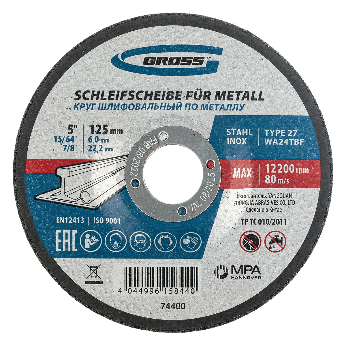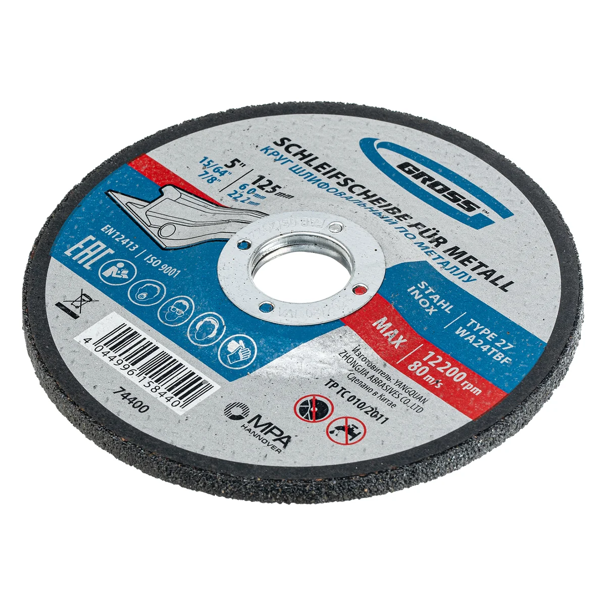 Круг шлифовальный по металлу, 125 х 6.0 х 22.2 мм Gross 74400