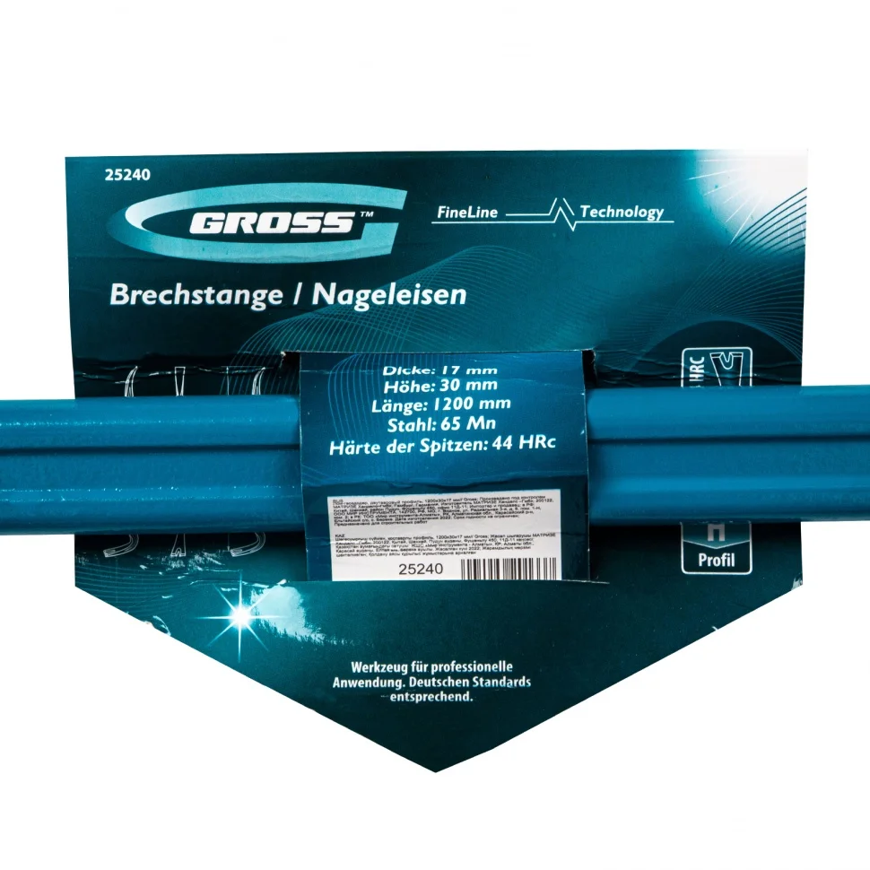 Лом-гвоздодер Gross 25240 с двутавровым профилем, 1200 х 30 х 17 мм, используется для извлечения гвоздей. Демонтажная рабочая часть позволяет разбирать деревянную тару, заборы, кровли и другие конструкции. Также инструмент может применяться в качестве рычага для поднимания и перемещения тяжеловесных грузов - двутавровый профиль усиливает его на момент излома при повороте на 90 градусов. Лом-гвоздодер будет полезен при проведении строительных и ремонтных работ, пригодится также и в домашнем хозяйстве. Преимущества Лом-гвоздодер изготовлен из кованой стали 65 Mn, обладающей пружинными свойствами, поэтому не ломается при высоких нагрузках. Твердость рабочих частей составляет 42-44 HRC - лом устойчив к повреждениям и износу. Антикоррозионное покрытие предохраняет инструмент от ржавчины и увеличивает срок его службы.