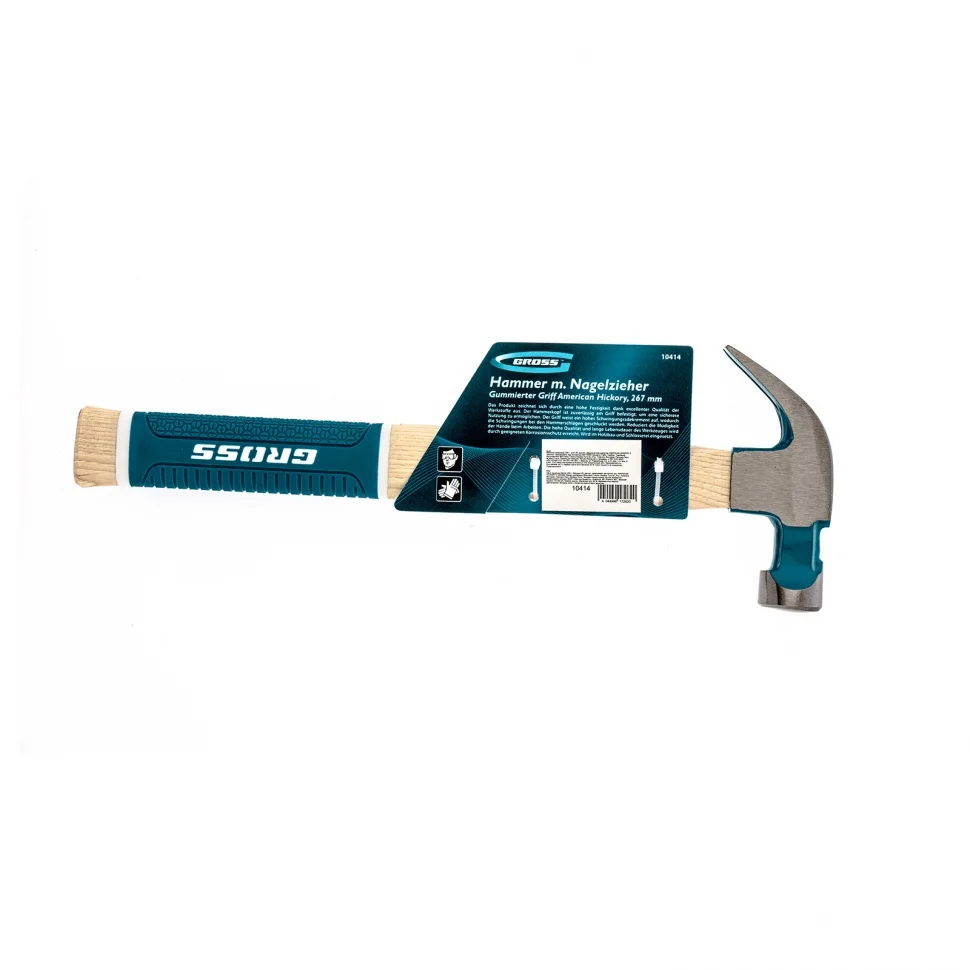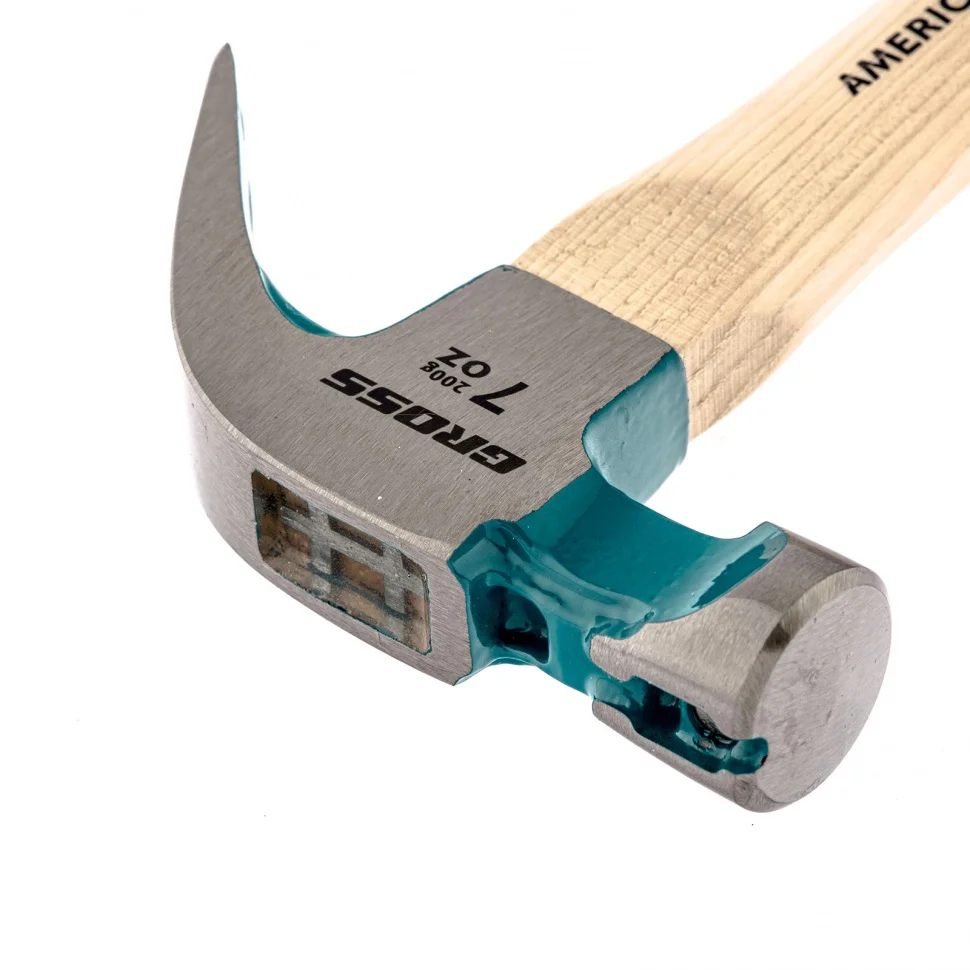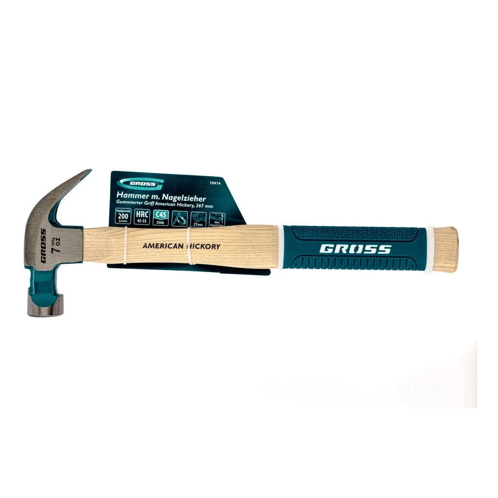 Молоток-гвоздодер, 200 г, угол 45, магнит, обрезиненная рукоятка American hickory Gross 10414