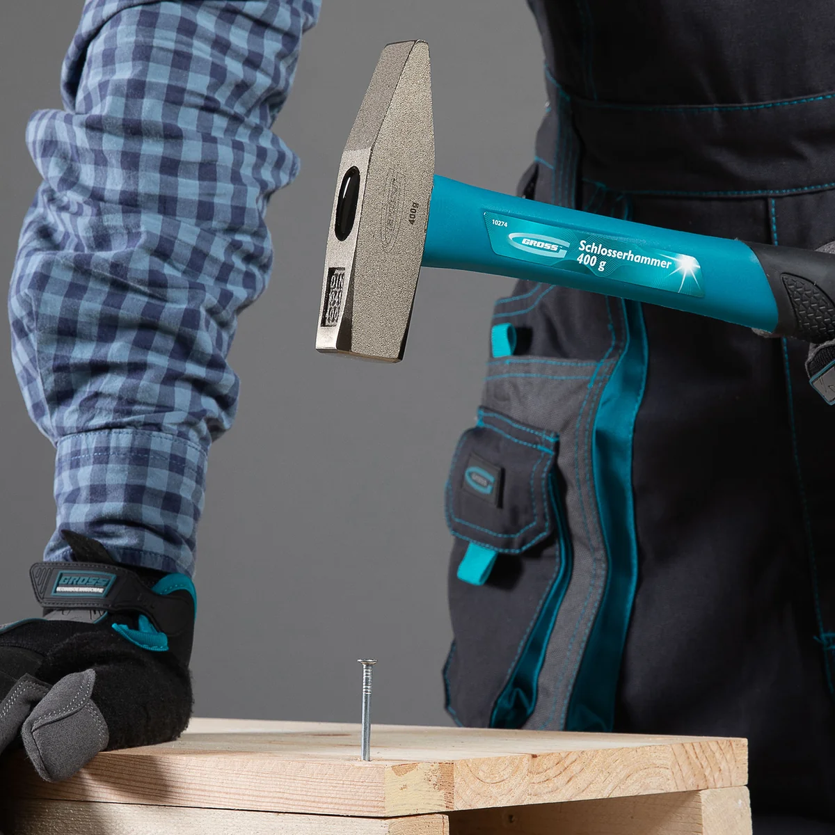 Молоток слесарный, 400 г, квадратный боек, фибергласовая обрезиненная рукоятка Gross 10274