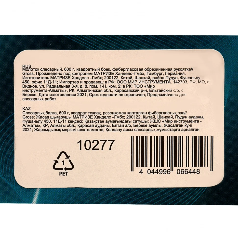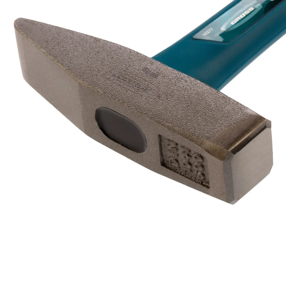 Слесарный молоток Gross 10277 с квадратным бойком весом 600 г и фибергласовой обрезиненной рукояткой предназначен для работы с металлическими заготовками, забивания гвоздей, штырей, дюбелей и других крепежей. Подходит для манипуляций в узких местах благодаря заостренной форме бойка. Молоток рекомендован для профессионального и домашнего применения.ПреимуществаОптимальная прочность и твердость — головка инструмента изготовлена из стали 50, закалена токами высокой частоты, отфрезерована и отшлифована.Деформационная стойкость — твердость квадратной части бойка составляет 50-52 HRC на глубину до 3 мм, а носок имеет твердость 44-46 HRC.Устойчивость к динамическим нагрузкам — область всада обладает наименьшей твердостью 34-36 HRC, что исключает появление трещин при выполнении работ.Надежная конструкция — рукоятка прочно фиксирует головку при помощи эпоксидной смолы, поэтому она не соскочит при ударе.Работа в сложных условиях — материал рукоятки не подвержен воздействию влаги и агрессивных сред.Комфортное использование — фибергласовая рукоятка поглощает вибрации от отдачи, а ее обрезиненная поверхность обеспечивает отличное сцепление с ладонью.
