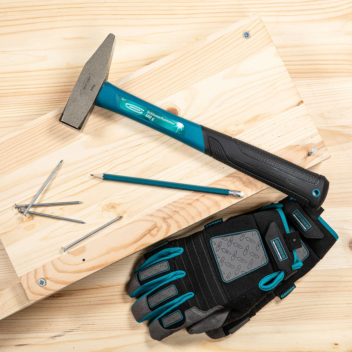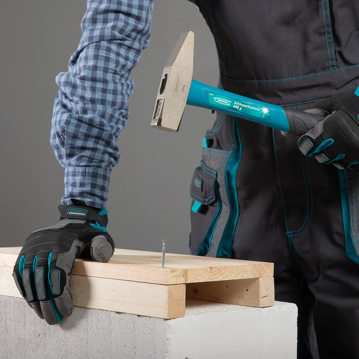 Молоток слесарный, 600 г, квадратный боек, фибергласовая обрезиненная рукоятка Gross 10277