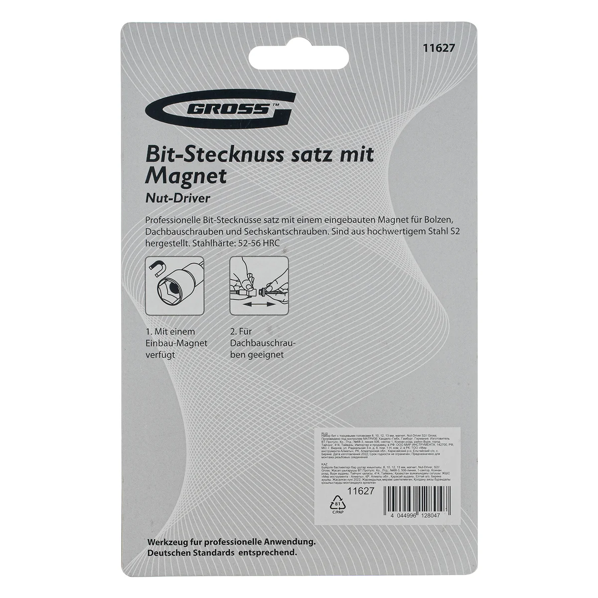 Набор профессиональных бит с торцевыми головками Gross Nut-Driver арт. 11627 включает 4 насадки с шестигранной головкой 1/4", используемые с шуруповертами. Комплект предназначен для монтажных работ с болтами, шурупами и кровельными саморезами, имеющими выступ в форме шестигранника. Насадки выдерживают интенсивные нагрузки и способны ввинтить большое количество метизов без потери работоспособности. Такие биты полностью заменяют торцевые головки.ПреимуществаКорпусы твердостью 52-56 HRC изготовлены из японской легированной стали S2, что повышает прочность бит, их надежность и ресурс.Вращающиеся гильзы-воротники позволяют удерживать биты и стабилизировать крепежные элементы.Саморезы не выпадают из бит благодаря встроенному магниту, это повышает комфорт работы. Свободной рукой мастер может придерживать кровельный лист.
