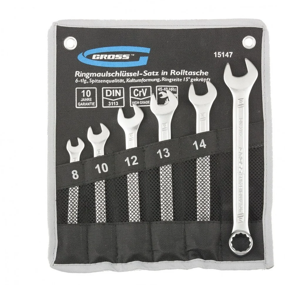 Набор ключей комбинированных 8-17 мм, 6 шт, CrV, холодный штамп Gross 15147