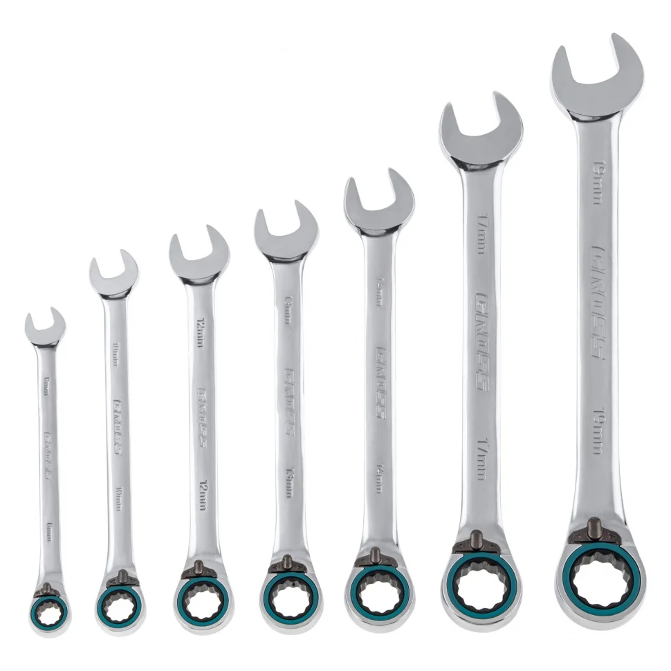 Набор ключей комбинированных с трещоткой, 8-19 мм, 7 шт, реверсивные, CrV Gross 14892