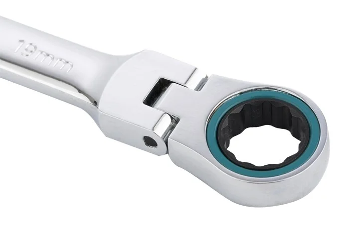 Набор шарнирных комбинированных ключей с трещоткой Gross 14891 включает в себя 7 предметов из стали CrV для откручивания и закручивания резьбовых соединений с диаметром головки 8-19 мм. Благодаря наличию рожкового зева ключи подходят для любых типов крепежей. 12-гранная кольцевая головка обеспечивает надежный контакт с поверхностью болта или гайки, облегчая работу и уменьшая риск деформации граней крепежа. Набор используется для обслуживания и ремонта автомобилей, пригодится также и в быту.ПреимуществаПрочность — ключи изготовлены из высокотвердой хромованадиевой стали.Высокий ресурс — храповый механизм твердостью 58 HRC долго сохраняет рабочие качества.Долговечность — хромоникелевое покрытие защищает инструменты от коррозии.Работа с крепежами в разных плоскостях — накидные головки с шарнирным механизмом изменяют свое положение на 180 градусов по вертикали.Удобная работа даже в труднодоступных местах — трещоточный механизм с 72 зубцами обеспечивает плавный и быстрый монтаж резьбовых соединений (угол поворота трещотки всего 5 градусов).