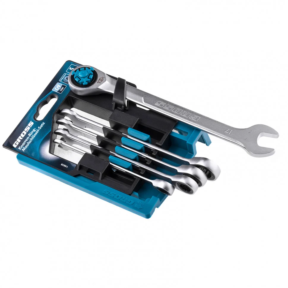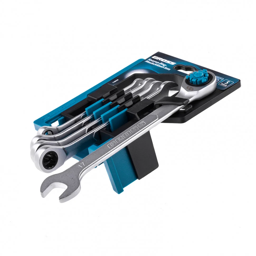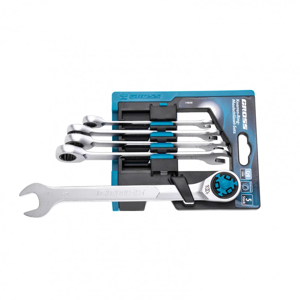 Набор ключей комбинированных трещоточных, количество зубьев 100, СRV, 5 шт, 8- 17 мм Gross 14858