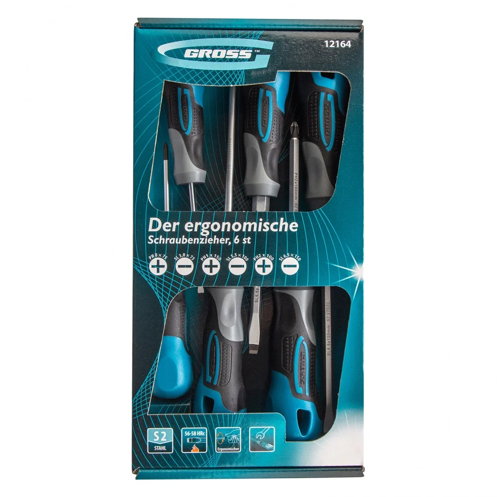Набор отверток 6 шт, S2, трехкомпонентная рукоятка Gross 12164