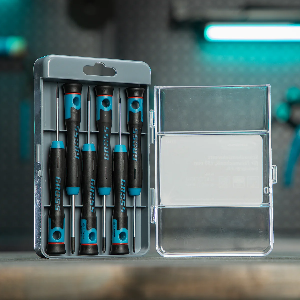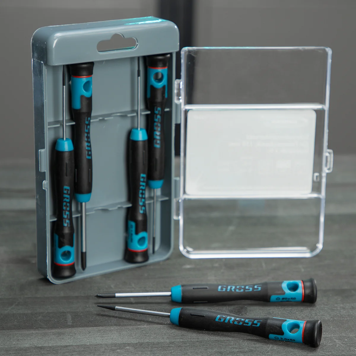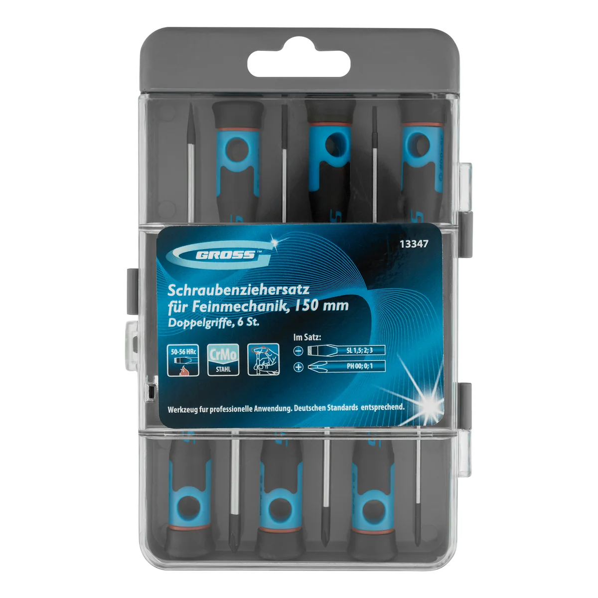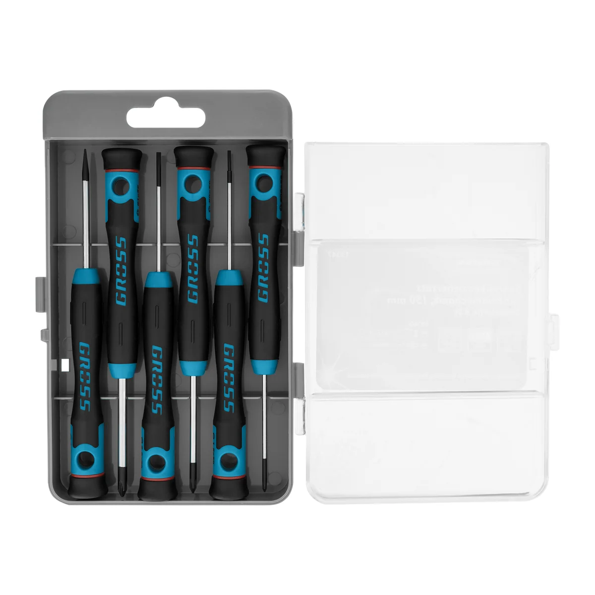 Набор отверток для точной механики, CrMo, двухкомпонентные рукоятки, 6 шт, пластиковый бокс Gross 13347