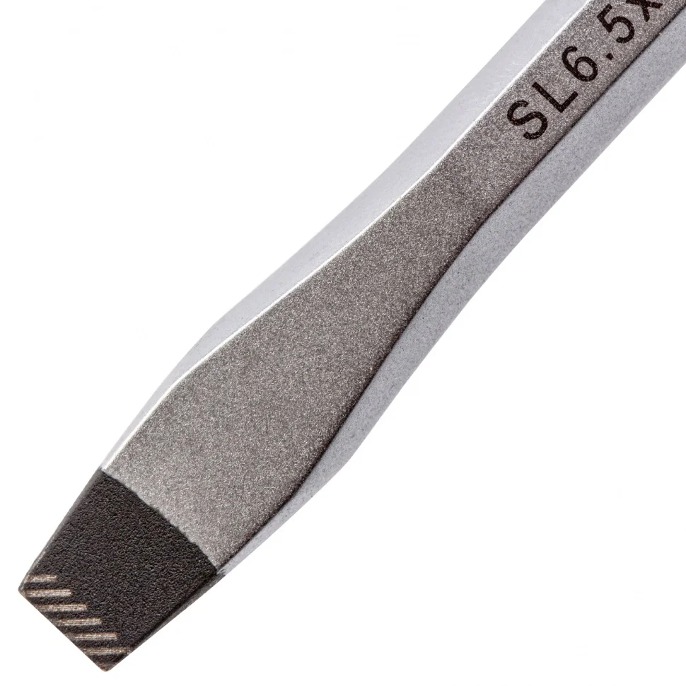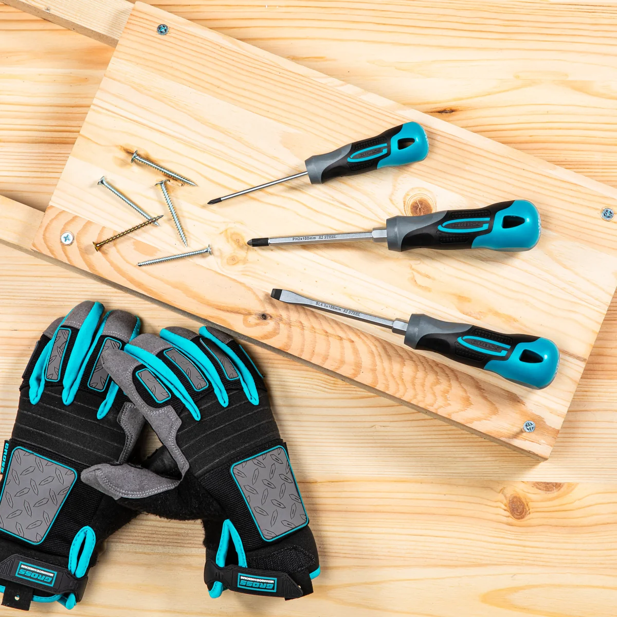 Комбинированный набор Gross 12167 включает 3 отвертки из стали S2, с трехкомпонентными рукоятками, позволяющих осуществлять монтаж/демонтаж крепежных элементов типа Philips и Slotted. Он используется для решения профессиональных задач при проведении строительных, ремонтных и монтажных работ. Длина стержней отверток составляет 75-100 мм, поэтому набор оптимален для работы с легкодоступными резьбовыми соединениями.ПреимуществаИзносостойкость и долговечность — отвертки изготовлены из высококачественной инструментальной стали S2.Высокий ресурс — стержни отверток прошли индукционную закалку, их твердость составляет 56-58 HRC.Удобство использования — шлицы со специальными насечками и фосфатным покрытием надежно сцепляются с головкой крепежа, что снижает риск его повреждения.Защита от ржавчины — хромовое покрытие стержней предотвращает образование коррозии.Намагниченные наконечники — крепеж удобно направлять в отверстие одной рукой, т.к. он не спадает со шлица.Расширенный функционал — шестигранные выступы на рукоятках позволяют использовать гаечный ключ для на 10 мм увеличения крутящего момента.Эргономичность — трехкомпонентные цельнолитые рукоятки надежно лежат в руке, что позволяет прикладывать меньше усилий во время работы.Крупная и четкая маркировка — на затыльнике каждой рукоятки указан типоразмер шлица, что упрощает поиск нужной отвертки под конкретную задачу.