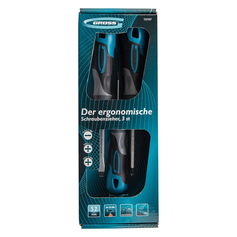 Набор отверток комбинированный 3 шт, S2, трехкомпонентная рукоятка Gross 12167