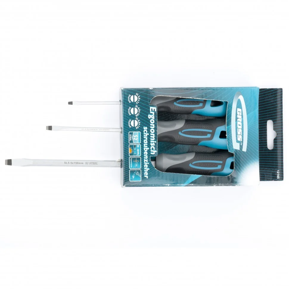 Набор отверток SL, 3 шт, S2, трехкомпонентная рукоятка Gross 12165