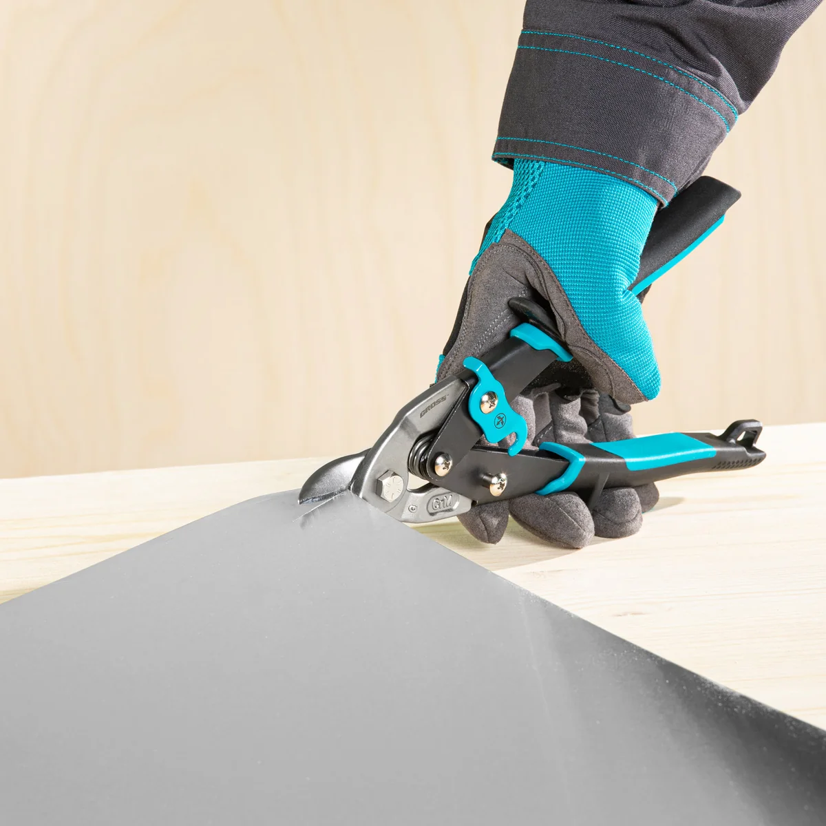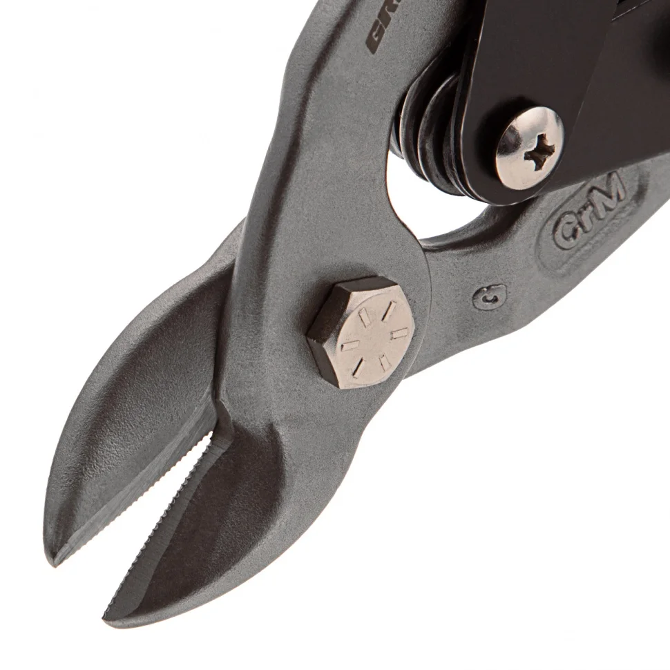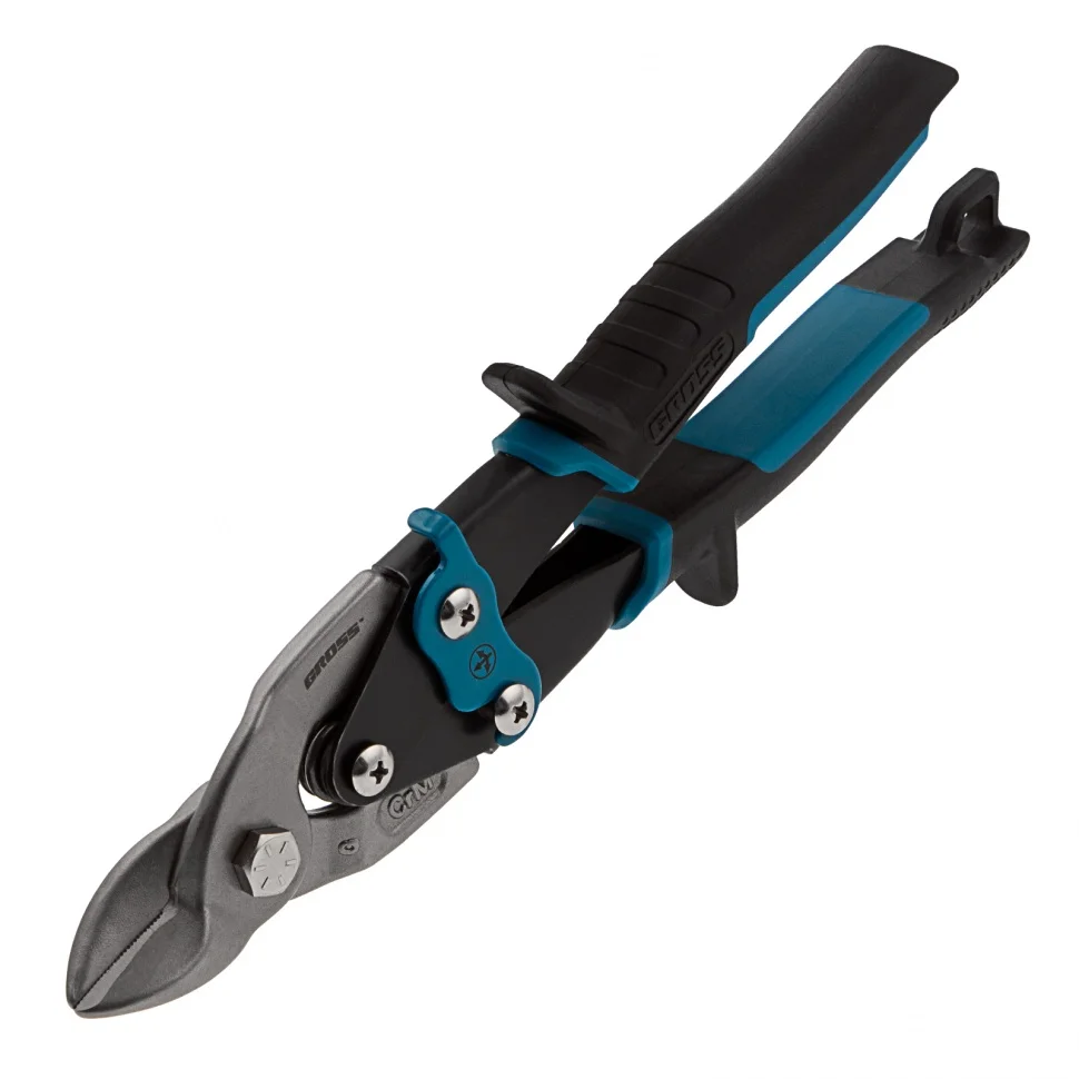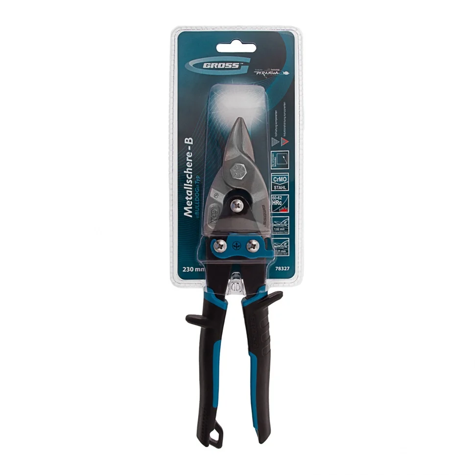 Ножницы по металлу Gross PIRANHA 78327 длиной 230 мм, из стали CrMo, с двухкомпонентными рукоятками и механизмом «bulldog», предназначены для прямого усиленного реза плоских заготовок из цветных металлов и сталей разных марок. Благодаря усиленному двухрычажному механизму «bulldog» инструмент справляется с холоднокатаной сталью толщиной до 1,6 мм и с «нержавейкой» толщиной до 1,2 мм. Ножницы рекомендованы для профессионального применения, пригодятся также и в быту.ПреимуществаНадежность — губки из стали хромомолибденовой группы обладают высокой прочностью и устойчивостью к нагрузкам.Высокая режущая способность — рабочие кромки успешно справляются с твердыми материалами, т.к. закалены индукционными токами высокой частоты до 60-62 HRC.Долговечность — покрытые маслом лезвия надежно защищены от образования коррозии.Эргономичность — двухкомпонентные рельефные рукоятки обеспечивают комфорт и безопасность во время работы благодаря нескользящей поверхности и упорам для пальцев.Безопасное хранение и транспортировка — ножницы не раскроются в сумке или кармане, т.к. специальный замок блокирует рукоятки.Возможность подвесного хранения — в петлю на рукоятке можно продеть скобу или шнурок.