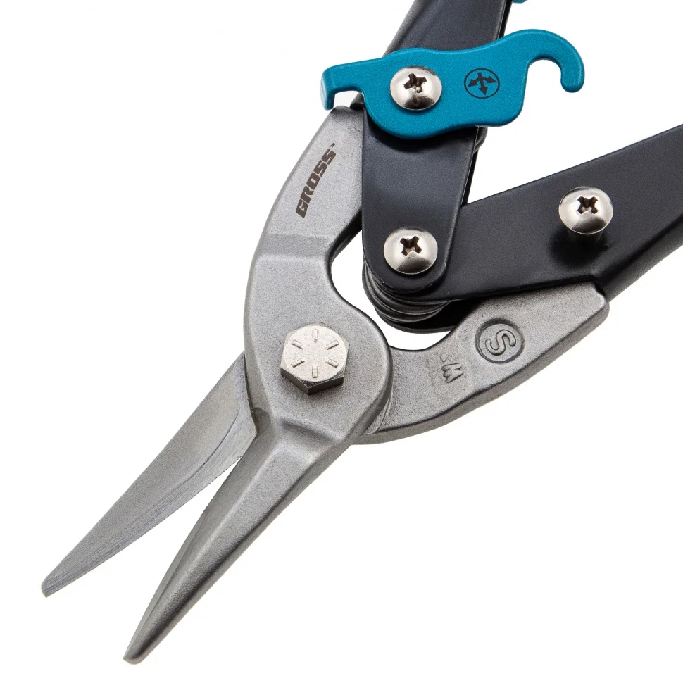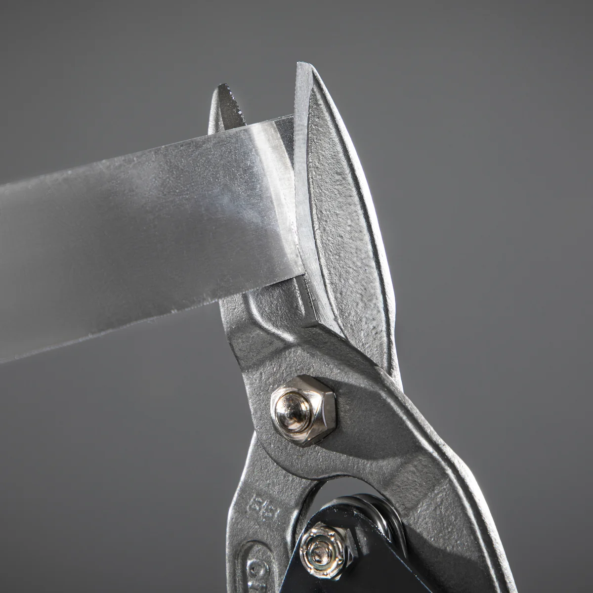 Ножницы по металлу Gross PIRANHA 78325 длиной 250 мм, из стали CrMo, с двухкомпонентными рукоятками, предназначены для точного прямого реза по листовым заготовкам. Двойной рычажный механизм уменьшает нагрузку на руку при резке толстого металла. Ножницы справляются с холоднокатаной сталью толщиной до 1,2 мм и с нержавеющей сталью толщиной до 0,7 мм. Инструмент используется для проведения профессиональных слесарных работ.Преимущества Надежность — губки ножниц изготовлены из стали хромомолибденовой группы, придающей им прочность и износостойкость. Высокий ресурс — режущие кромки прошли индукционную закалку до твердости 60-62 HRC, поэтому долго держат заточку. Безопасность — фиксатор удерживает рукоятки в сведенном положении, предотвращая их случайное раскрытие во время хранения или транспортировки. Защита от ржавчины — лезвия покрыты маслом, что предохраняет их от коррозии и продлевает срок службы инструмента. Эргономичность — двухкомпонентные рукоятки имеют упоры, предотвращающие соскальзывание пальцев на рабочую часть и обеспечивающие комфорт во время работы. Удобное хранение — на рукоятке имеется ушко, в которое можно продеть скобу или шнурок для подвешивания на крючок или гвоздь.
