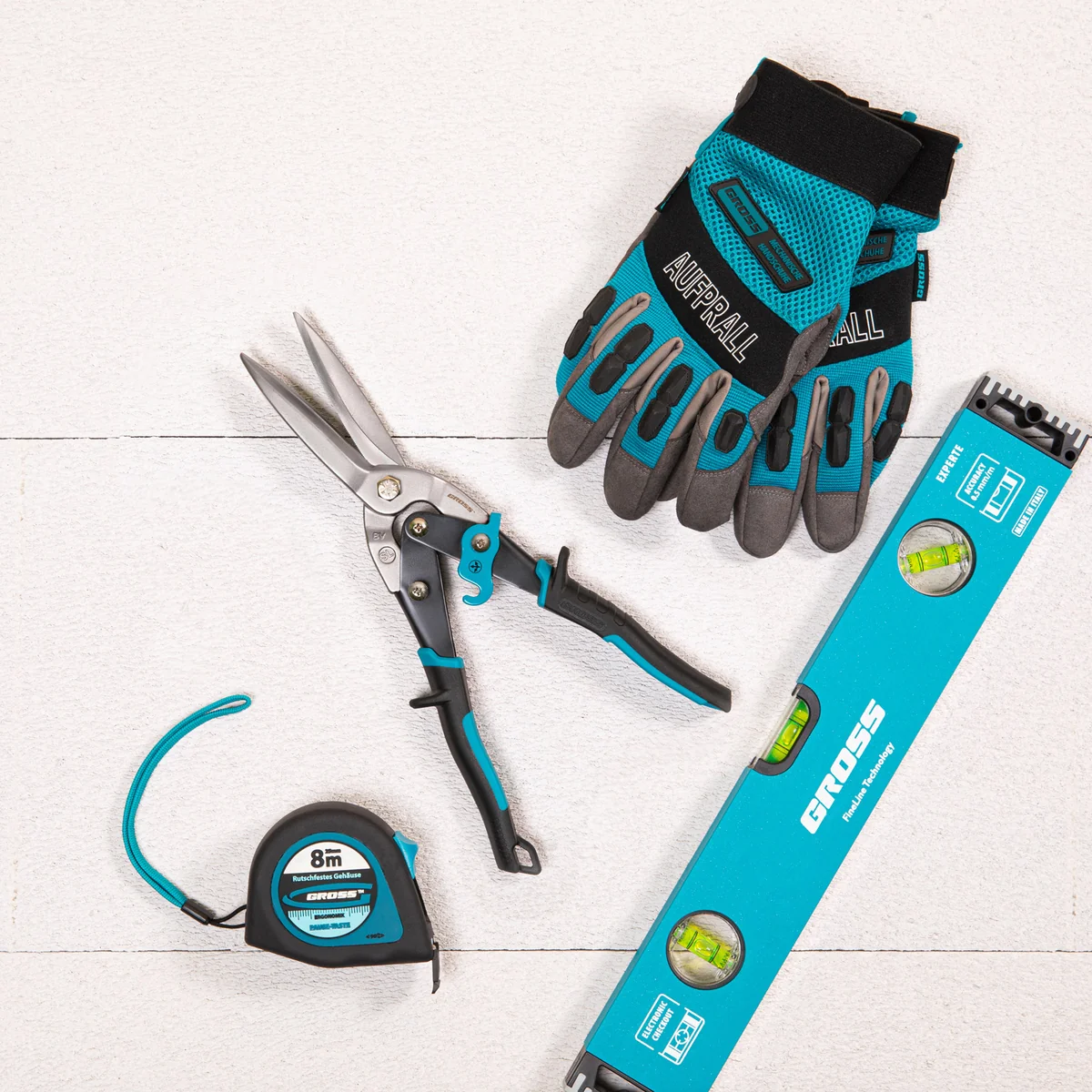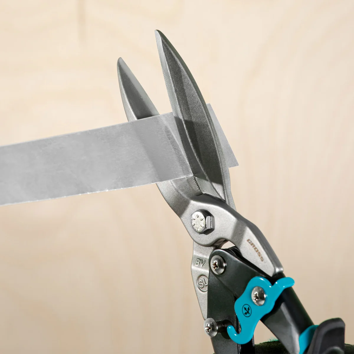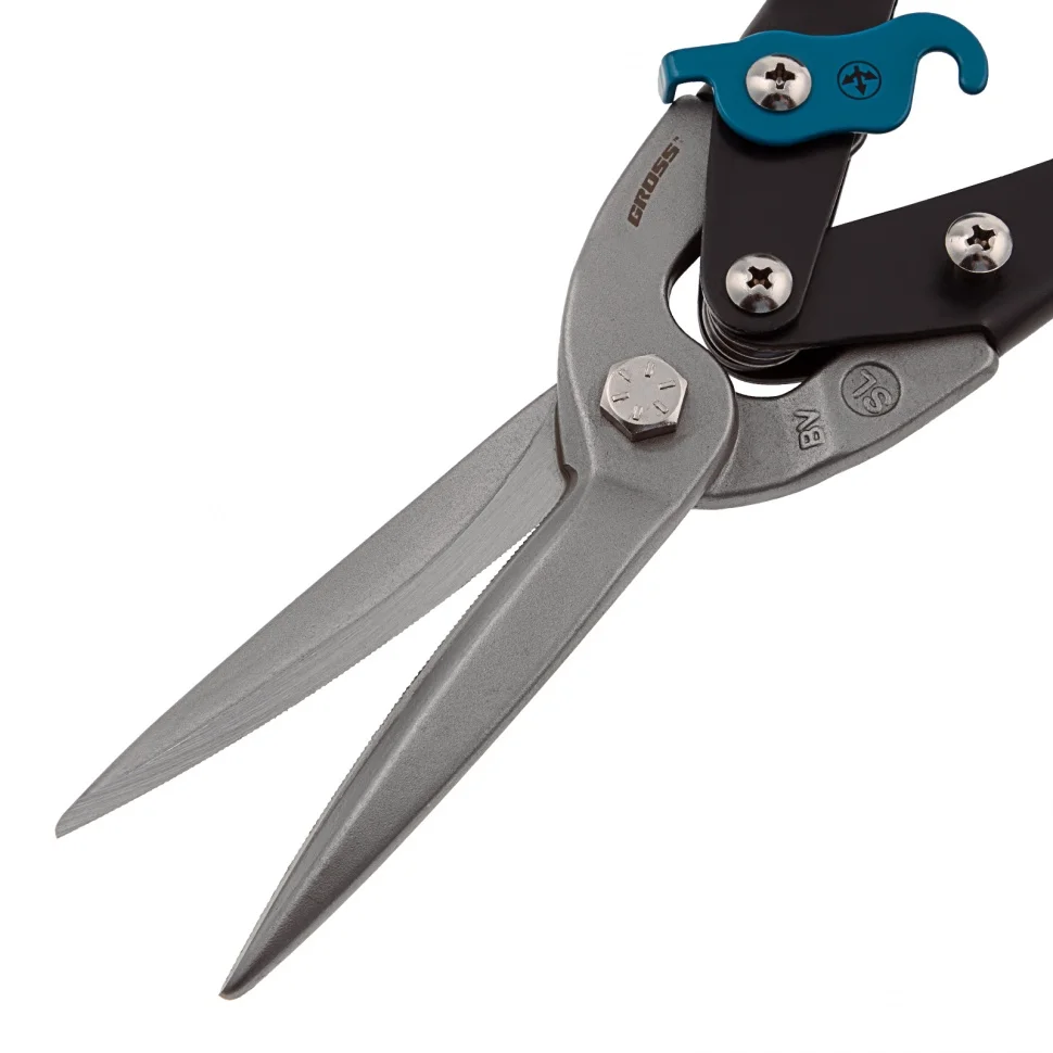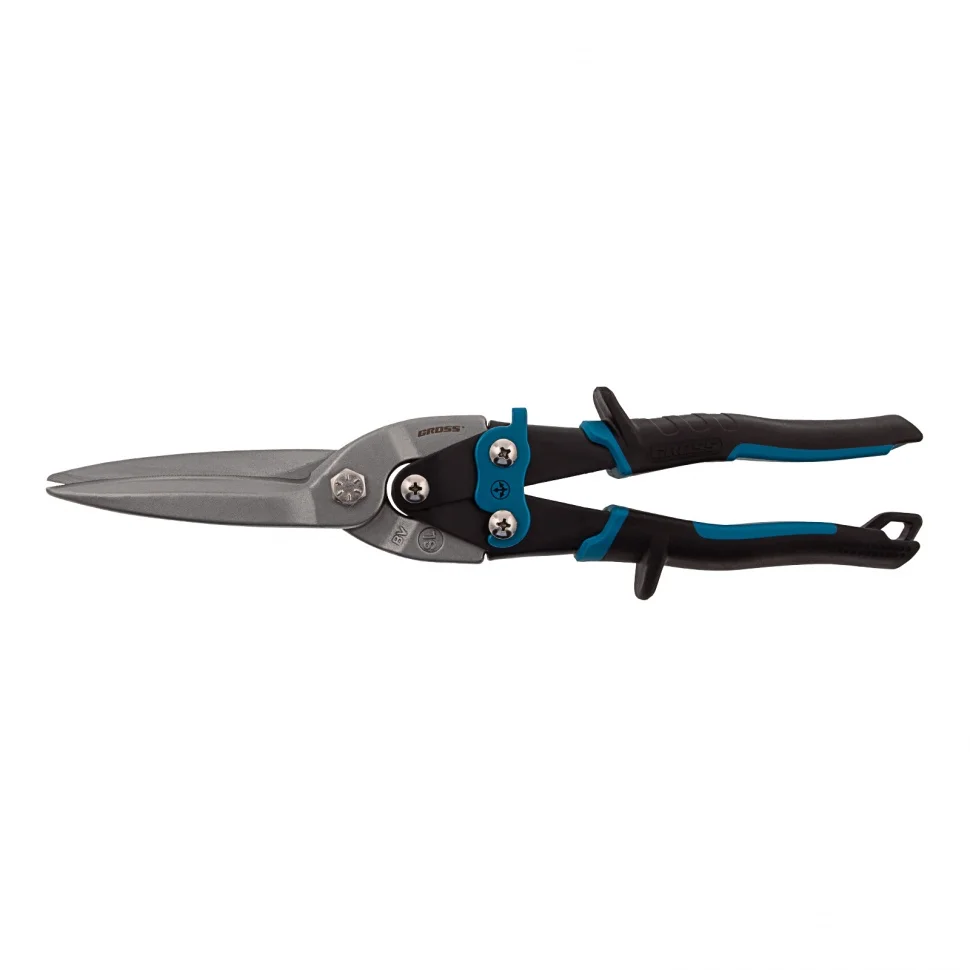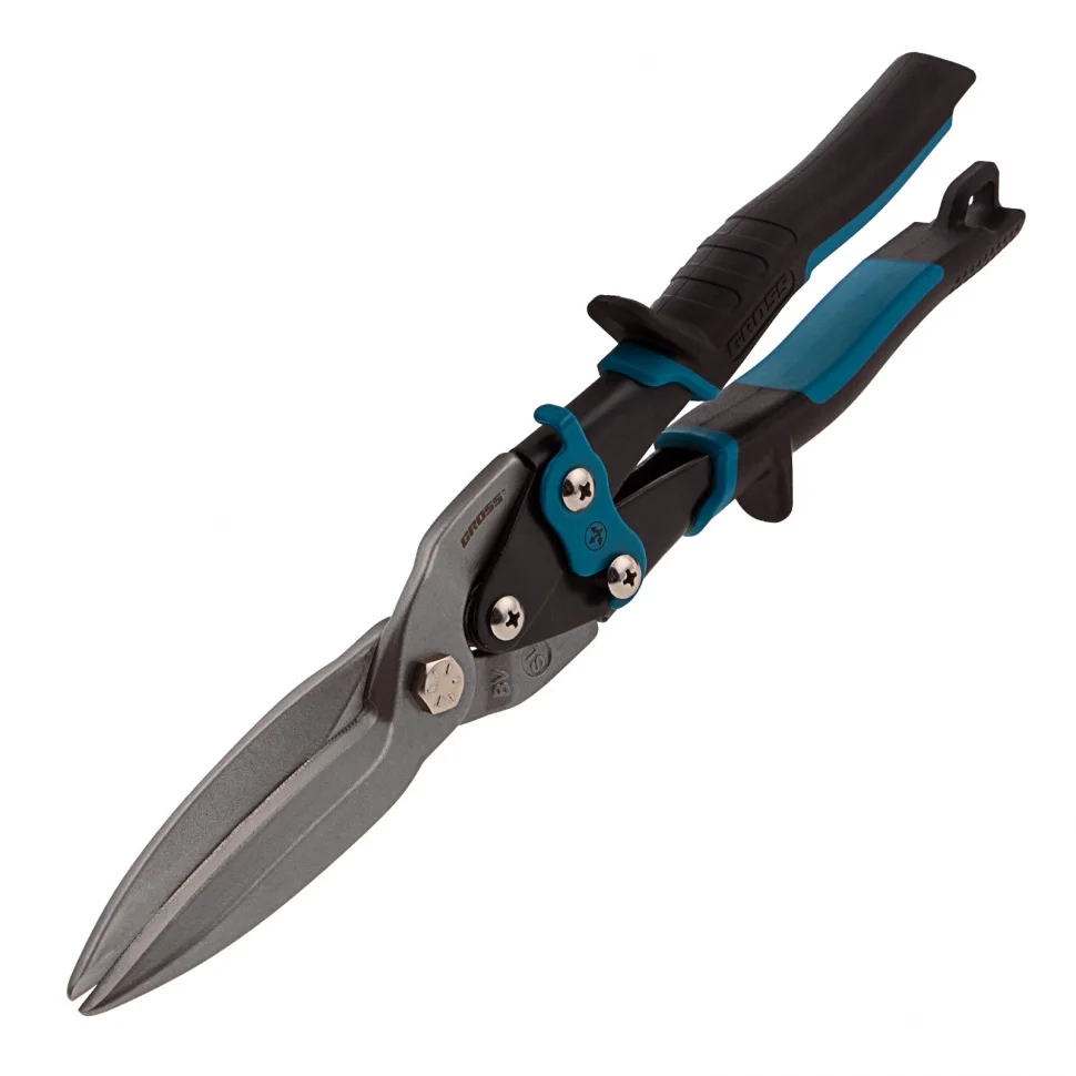 Ножницы по металлу Gross PIRANHA 78329 длиной 270 мм, из стали CrMo, с двухкомпонентными рукоятками, используются для прямого проходного реза плоских заготовок. Обеспечивают точный рез, справляются с холоднокатаной сталью толщиной до 0,94 мм и «нержавейкой» толщиной до 0,53 мм. Двойной рычажный механизм снижает нагрузку на руку мастера при резке твердых материалов. Ножницы предназначены для профессиональных слесарных работ, пригодятся также и в быту.ПреимуществаНадежность — губки из стали хромомолибденовой группы обладают повышенной твердостью и износостойкостью.Эффективность — рабочие кромки твердостью 60-62 HRC характеризуются высокой режущей способностью.Защита от ржавчины — лезвия, покрытые маслом, устойчивы к образованию коррозии, что продлевает срок службы инструмента.Безопасность — блокировочный замок фиксирует рукоятки во время хранения и транспортировки.Комфорт во время работы — эргономичные двухкомпонентные рукоятки с упорами для пальцев гарантируют удобный хват и не выскальзывают из ладони.Удобное хранение — ушко на рукоятке позволяет подвешивать инструмент на скобу или шнурок.