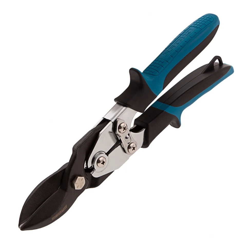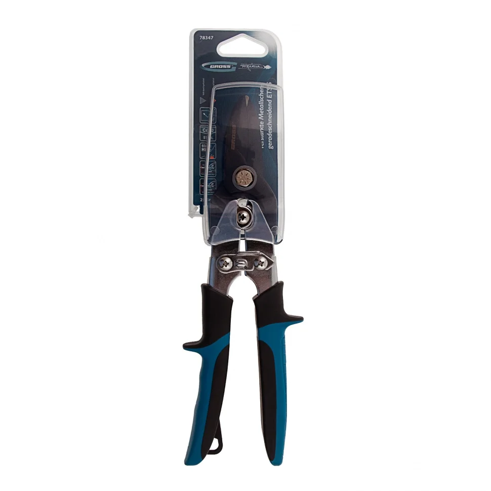 Усиленные ножницы по металлу Gross PIRANHA 78347 длиной 255 мм, из стали CrMo, с двухкомпонентными рукоятками, предназначены для прямого реза по листовым заготовкам. Режут металл разных марок толщиной до 1,2 мм, а также нержавеющую сталь толщиной до 0,94 мм. Двойной рычажный механизм уменьшает нагрузку на руку, передавая при этом значительное усилие. Ножницы используются при проведении строительных, монтажных работ, будут полезны и в быту.ПреимуществаПрочность — рабочие части из стали хромомолибденовой группы не деформируются при высоких нагрузках.Высокая режущая способность — лезвия закалены индукционными токами до твердости 60-62 HRC, поэтому успешно справляются с резкой листового металла.Защита от ржавчины — покрытые маслом рабочие части устойчивы к образованию коррозии, поэтому инструмент прослужит долго.Безопасность — блокировочный замок удерживает лезвия в сомкнутом положении во время хранения и транспортировки.Эргономичность — двухкомпонентные рукоятки удобно лежат в руке, а упоры препятствуют соскальзыванию пальцев на рабочую часть, поэтому ножницами комфортно работать.Удобное хранение и перемещение — за ушко на рукоятке инструмент можно подвешивать на инструментальный пояс или на крючок.