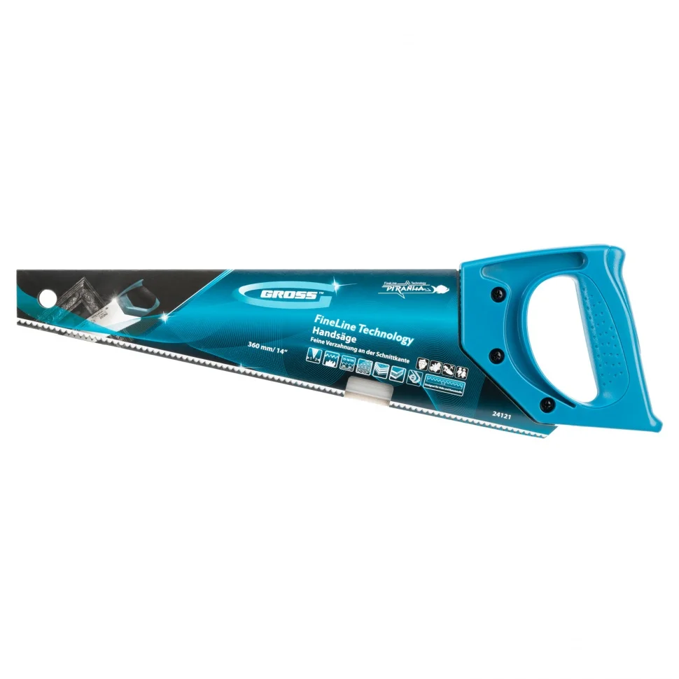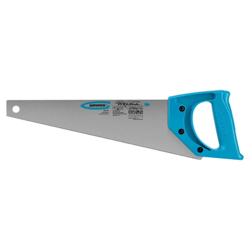 Ножовка для работы с ламинатом "Piranha", 360 мм, 15-16 TPI, зуб 2D, каленый зуб, пласт.рук-ка Gross 24121