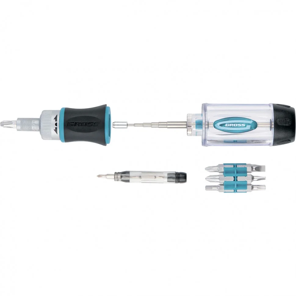 Отвертка реверсивная с телескопическим магнитным стержнем, 16 шт, S2 Gross 11607