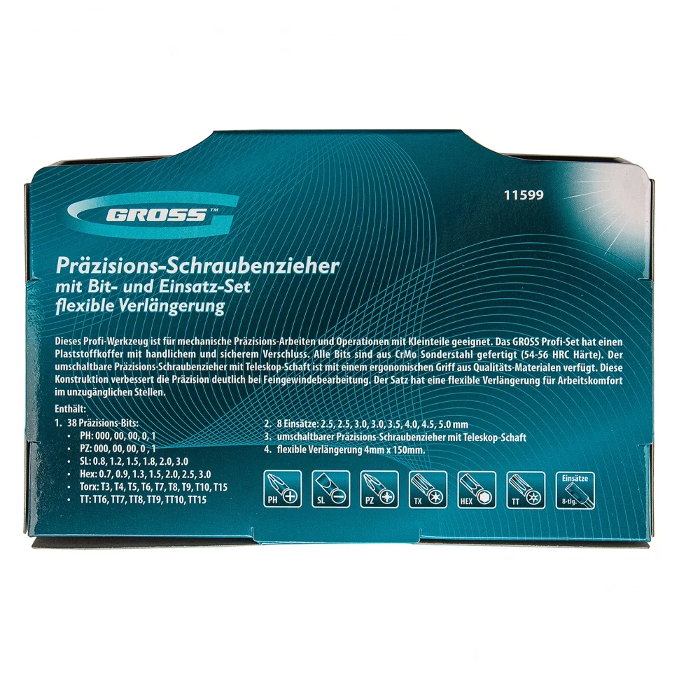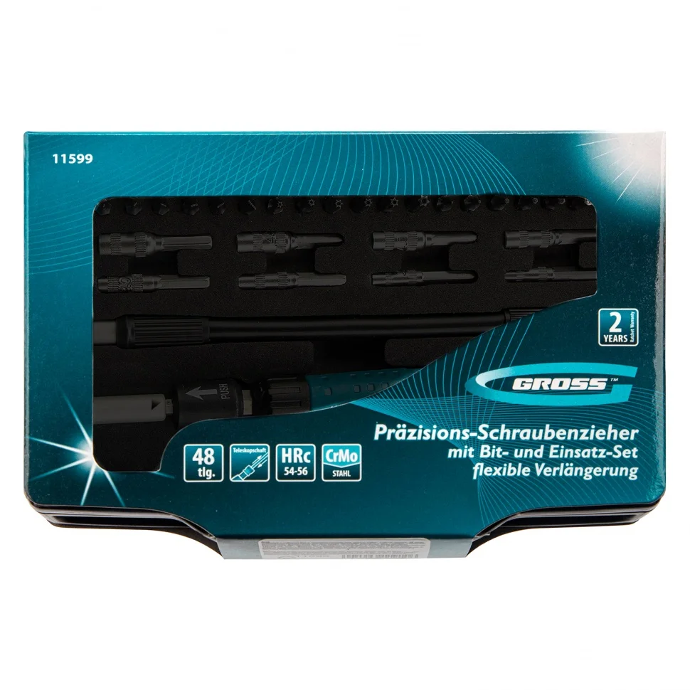 Отвертка с набором бит и торцевых головок для точных работ, гибкий привод, 48 шт, CrMo Gross 11599