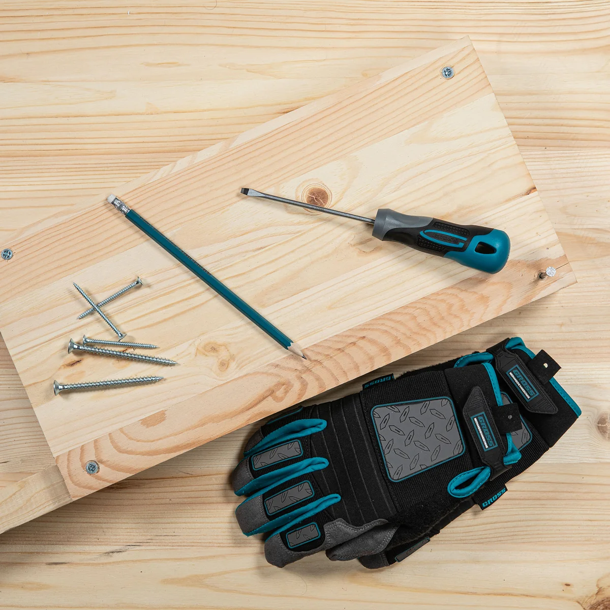 Отвертка Gross 12105, SL4,0 x 100 мм, из стали S2, с трехкомпонентной рукояткой, рассчитана на монтаж и демонтаж крепежных элементов типа Slotted «минус». С ее помощью можно проводить монтажные, строительные и ремонтные работы. Длина стержня 100 мм позволяет работать с крепежом в углублениях. Отвертка подходит для профессионального использования.ПреимуществаВысокий ресурс — рабочая часть выполнена из японской легированной стали S2, закаленной до необходимой твердости.Улучшенное сцепление с крепежом — фосфатированный шлиц с лазерными насечками не проскальзывает и не допускает слизывание граней.Намагниченное жало — шлиц надежно фиксируется в головке крепежа, что облегчает работу и позволяет освободить руку.Удобство эксплуатации — на затыльнике рукоятки и стержне обозначены тип шлица и длина стержня.Эргономичность — трехкомпонентная рукоятка надежно ложится в руку, обеспечивая комфорт во время длительной работы.