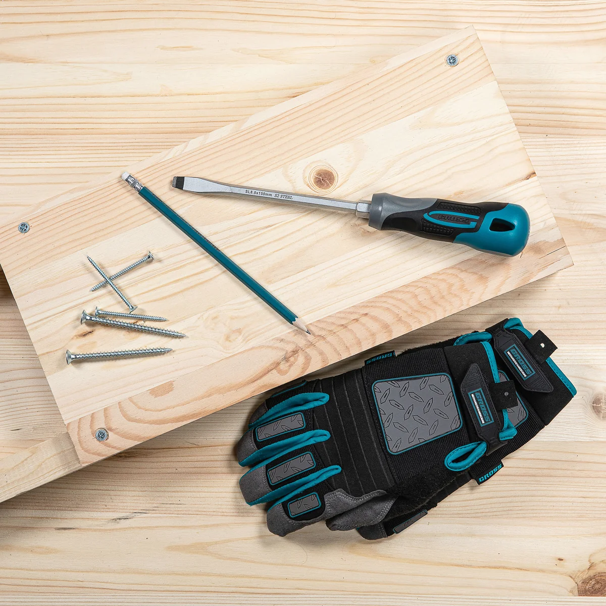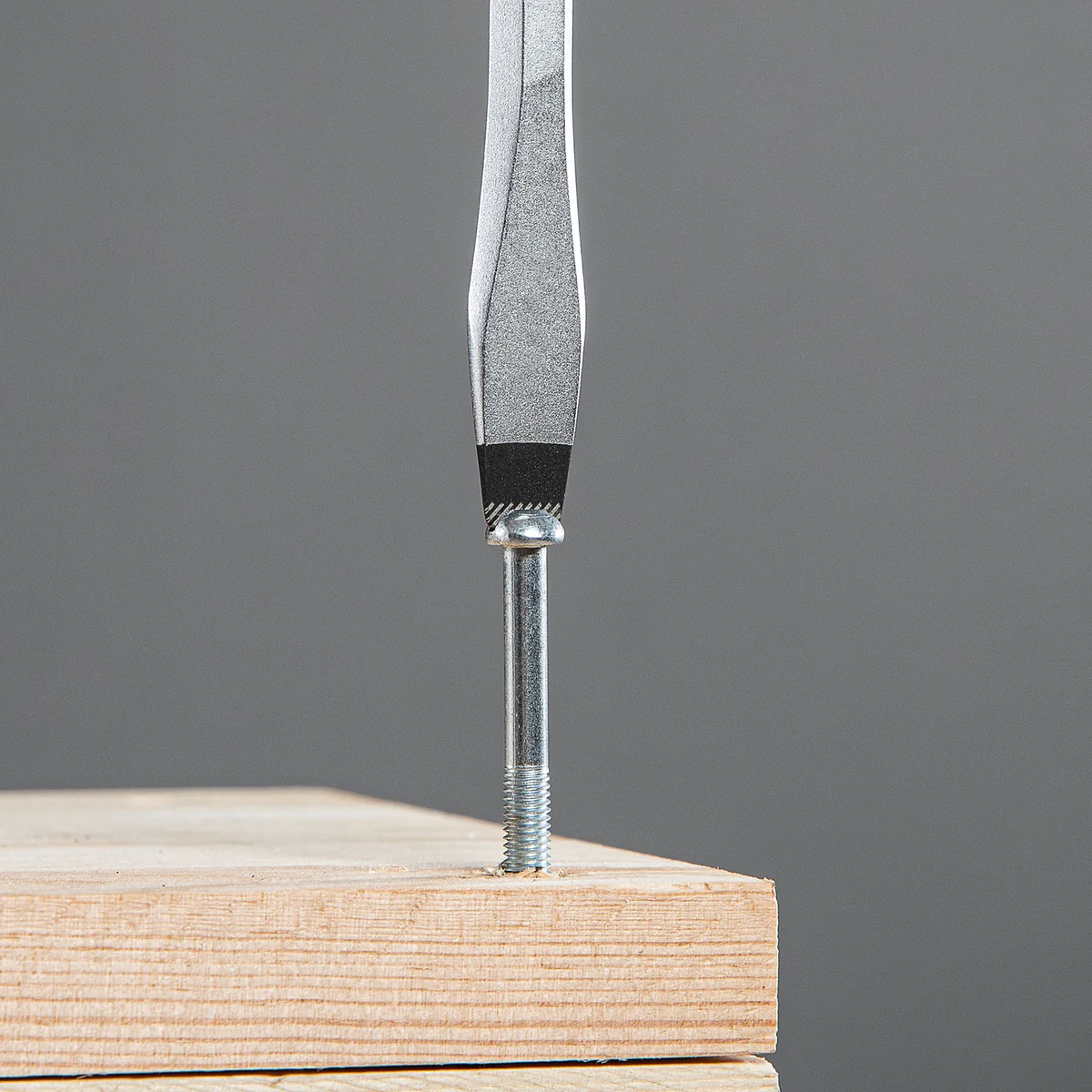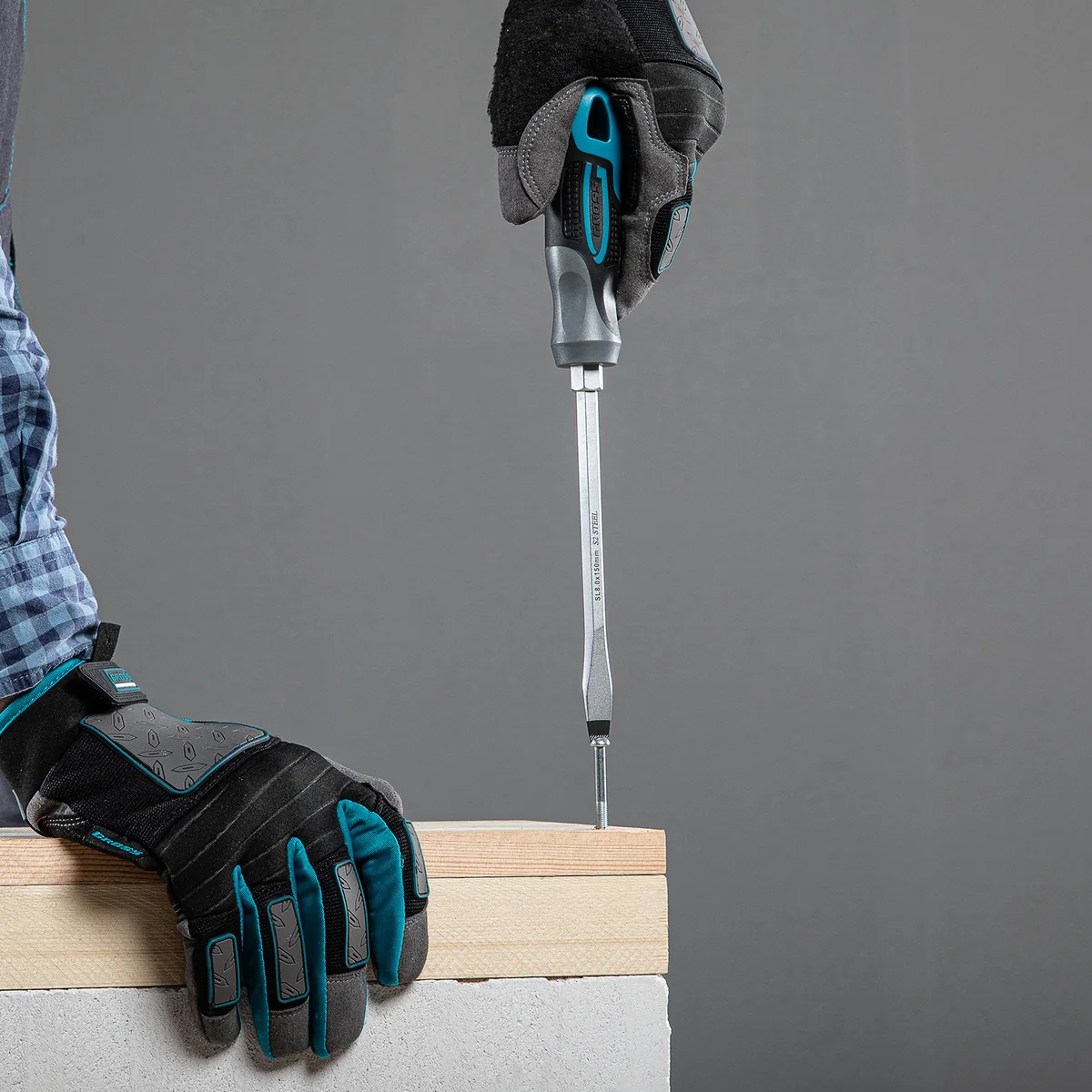 Отвертка Gross 12119, SL8,0 x 150 мм, из стали S2, с трехкомпонентной рукояткой, рассчитана на монтаж и демонтаж крепежных элементов типа Slotted «минус». С ее помощью можно проводить монтажные, строительные и ремонтные работы. Длина стержня 150 мм позволяет работать с крепежом в углублениях. Отвертка подходит для профессионального использования.ПреимуществаВысокий ресурс — рабочая часть выполнена из японской легированной стали S2, закаленной до необходимой твердости.Улучшенное сцепление с крепежом — фосфатированный шлиц с лазерными насечками не проскальзывает и не допускает слизывание граней.Намагниченное жало — шлиц надежно фиксируется в головке крепежа, что облегчает работу и позволяет освободить руку.Широкие возможности — шестигранник под ключ позволяет работать с большим усилием без риска поломки инструмента.Удобство эксплуатации — на затыльнике рукоятки и стержне обозначены тип шлица и длина стержня.Эргономичность — трехкомпонентная рукоятка надежно ложится в руку, обеспечивая комфорт во время длительной работы.