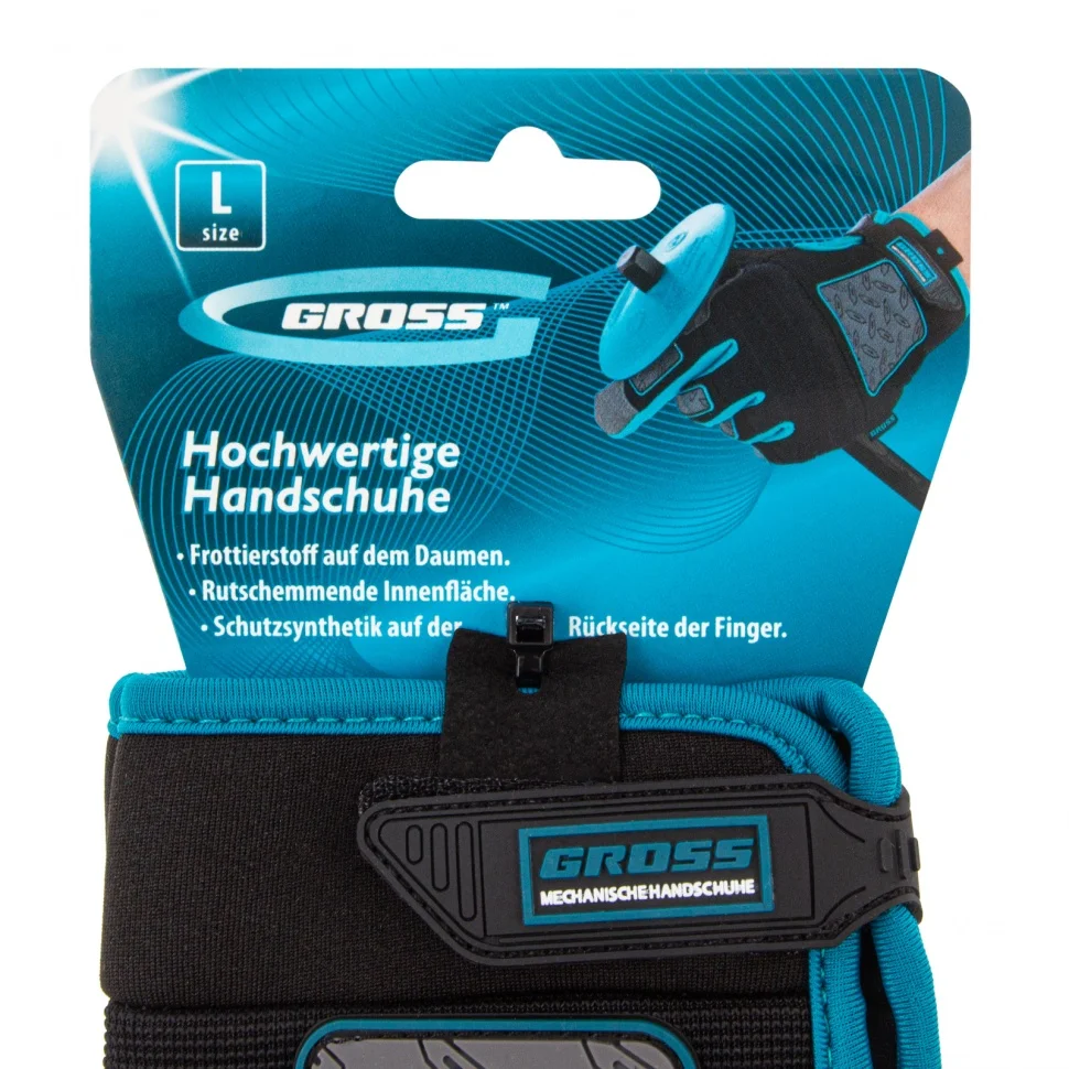 Универсальные комбинированные перчатки Gross DELUXE 90333 размера L защищают руки от механических воздействий и образования мозолей. Анатомически скроенные перчатки плотно облегают кисти рук и не сковывают движения. Силиконовые накладки на внутренней стороне пальцев препятствуют выскальзыванию инструментов и снаряжения из рук. Перчатки пригодятся при работе с ручным и электрическим инструментом, занятиях мото- и велоспортом, а также при участии в спортивных высокотравматичных играх.ПреимуществаИзносостойкость — благодаря прокладкам на пальцах и формованной накладке на ладонной части перчатки защищены от протирания.Возможность использования в холодный период — на внешней стороне пальцев находится резиновое покрытие, обеспечивающее термическую защиту.Надежная фиксация — манжеты снабжены лентами-застежками velcro, благодаря которым изделия не сползают с кистей рук.Защита от натирания — при изготовлении перчаток использованы специальные швы Ergonomic Cut, которые не повреждают кожу.Комфорт во время работы — в области суставов пальцев имеются воздухопроницаемые неопреновые прокладки, поэтому руки в перчатках не потеют.Подтвержденное качество — изделия прошли испытания, доказавшие их стойкость к разрывам, проколам, порезам и истиранию.