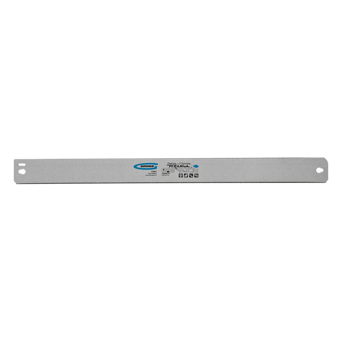 Пильное полотно Gross «PIRANHA» 22875 длиной 600 мм, с каленым зубом с 3D-заточкой, 18 TPI — режущий элемент для прецизионного стусла, применяемый для распила под углом заготовок из дерева, мягкого металла и пластика. Мелкие зубья с шагом 18 TPI позволяют получить точный и чистый рез. Полотно используется для пиления плинтусов, реек, дверных наличников и других деталей.