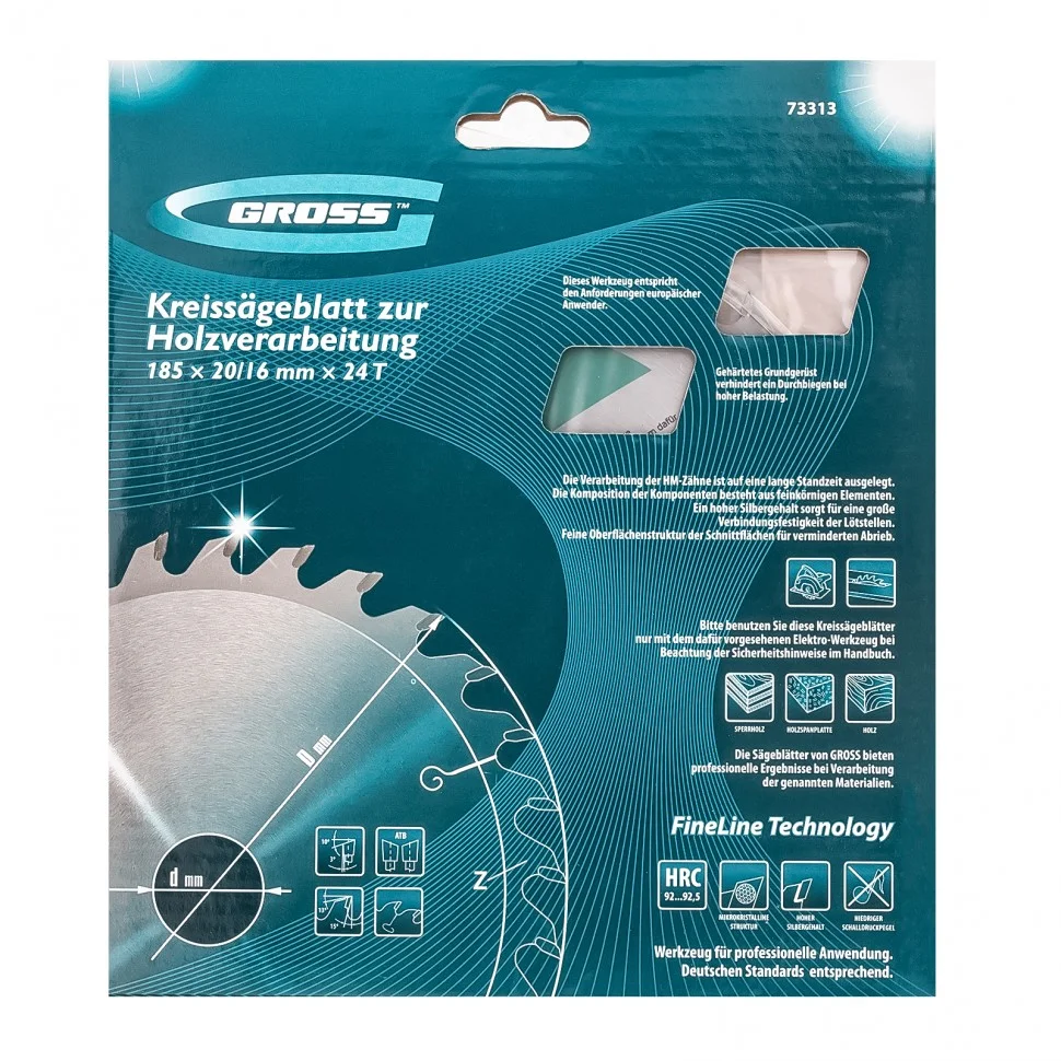 Пильный диск Gross 73313, ф185 х 20 мм, с 24 зубьями и переходным кольцом 20/16 мм, предназначен для распила древесины мягких и твердых пород, ДСП, МДФ и фанеры. Является оснасткой для циркулярных и торцовочных пил с посадочным диаметром 20 мм, благодаря универсальному типу зубьев АТВ подходит как для продольного, так и для поперечного реза материалов. Диск изготовлен на высококачественном оборудовании, специально рассчитан на профессиональное применение и выполнение большого объема работ.ПреимуществаВысокое качество работ — 24 крупных зуба и режущие кромки, прошедшие многоступенчатую автоматическую заточку, обеспечивают быстрый и точный рез материалов.Прочность — корпус изготовлен из инструментальной стали 65Mn и термообработан, поэтому обладает устойчивостью к динамическим нагрузкам.Максимальный рабочий ресурс — режущие пластины выполнены из сплава К10 со специальными добавками Ceratizit твердостью 91 HRА, что гарантирует их износостойкость.Надежность — в припое содержится значительное количество серебра, он прочно фиксирует твердосплавные пластины к корпусу диска.Продуманная конструкция — компенсационные пазы, выполненные при помощи лазера, способствуют существенному уменьшению деформации диска и получению ровного среза.Кольцо-переходник в комплекте — при необходимости можно самостоятельно изменить посадочный диаметр и установить диск на электроинструмент с посадкой 16 мм.