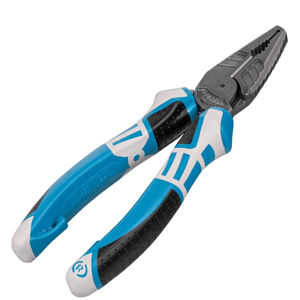 Комбинированные плоскогубцы Gross 16972 длиной 165 мм, с трехкомпонентными рукоятками, используются для перекусывания мягкой и жесткой проволоки, сгибания металлических листов и захвата деталей. Благодаря специальным внутренним граням возможно применение инструмента в качестве гаечного ключа. Плоскогубцы пригодятся профессионалам и частным мастерам для проведения слесарных, строительных и монтажных работ.Преимущества Эффективность — благодаря смещенному к режущим кромкам шарниру усилие реза повышено на 20%. Высокий показатель прочности — рабочая часть изготовлена из инструментальной стали 45 методом ковки, а на внешних металлических частях имеются ребра жесткости. Защита от коррозии — покрытие Titan finish продлевает срок службы плоскогубцев. Долговечность — режущие кромки прошли закалку индукционными токами для повышения твердости и износостойкости. Комфортное использование — эргономичные рукоятки с резиновыми вставками удобно лежат в руке, что снижает усталость во время длительной работы. Дополнительные возможности — на нижней части рукояток имеются специальные упоры, на которые можно установить скобу для подвешивания или пружину авторазжима. Подтвержденное качество — производитель предоставляет 5-летнюю гарантию на заводской брак.
