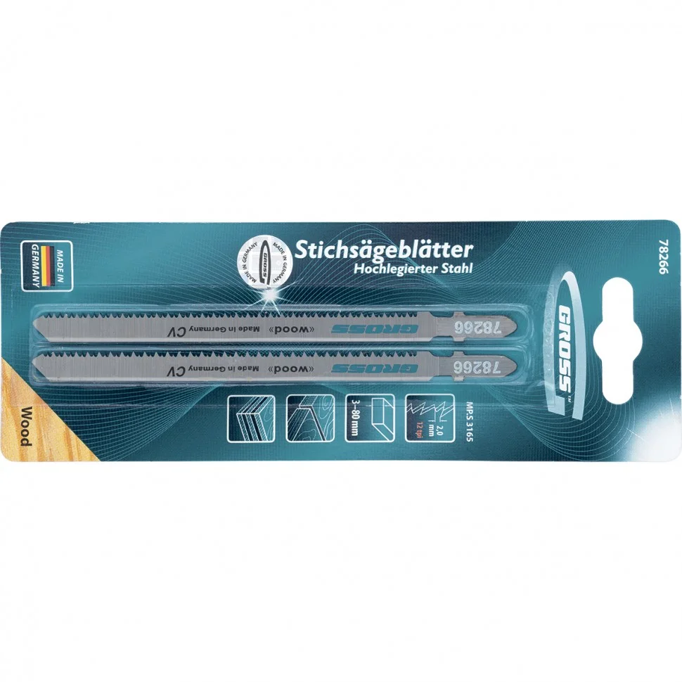 Полотна по дереву Gross 78266, 2 шт. (3165), являются сменными режущими элементами для большинства современных моделей электролобзиков. Осуществляют прямой рез деревянных заготовок и изделий толщиной 3-80 мм. Высококачественные полотна пригодятся профессиональным мастерам в ходе проведения ремонтных и строительных работ.ПреимуществаПолотна произведены в Германии из высококачественной хромованадиевой стали, обладают твердостью и износостойкостью.Точность и аккуратность распиловки обеспечивают зубья с шагом 2 мм.Лазерная раскройка профиля полотен, автоматизированная заточка и шлифовка гарантируют высокое качество реза.Удобство транспортировки и безопасность хранения обеспечивает жесткий блистер, в котором поставляются полотна.
